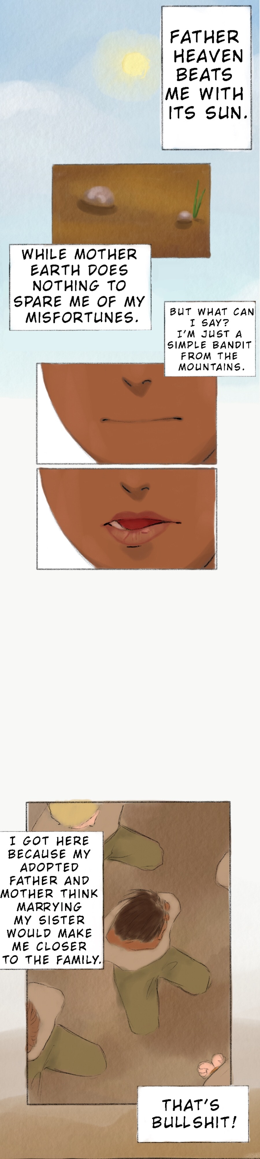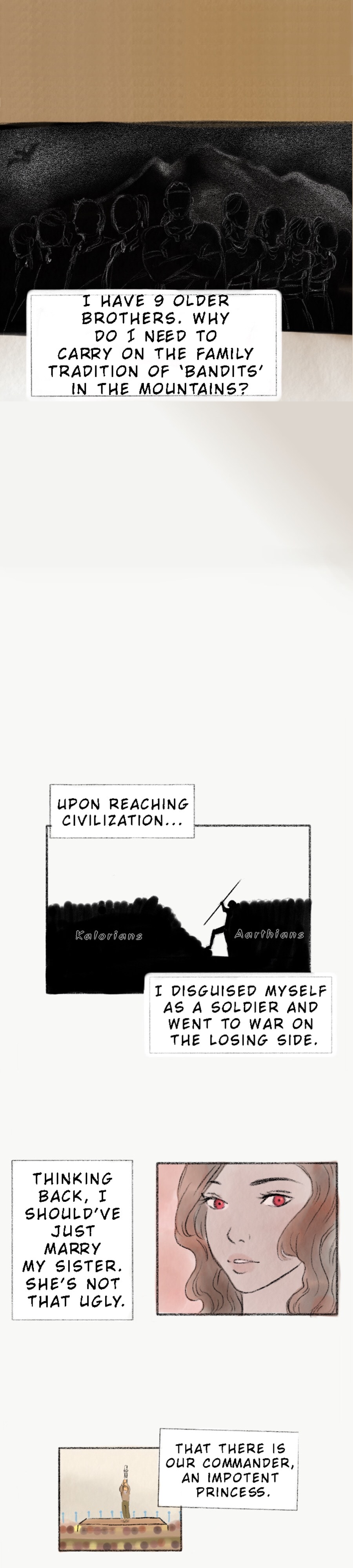 Maeve, the 10th son of the Western Mountains Bandit King, ran away from home to escape marrying his sister since he's adopted.