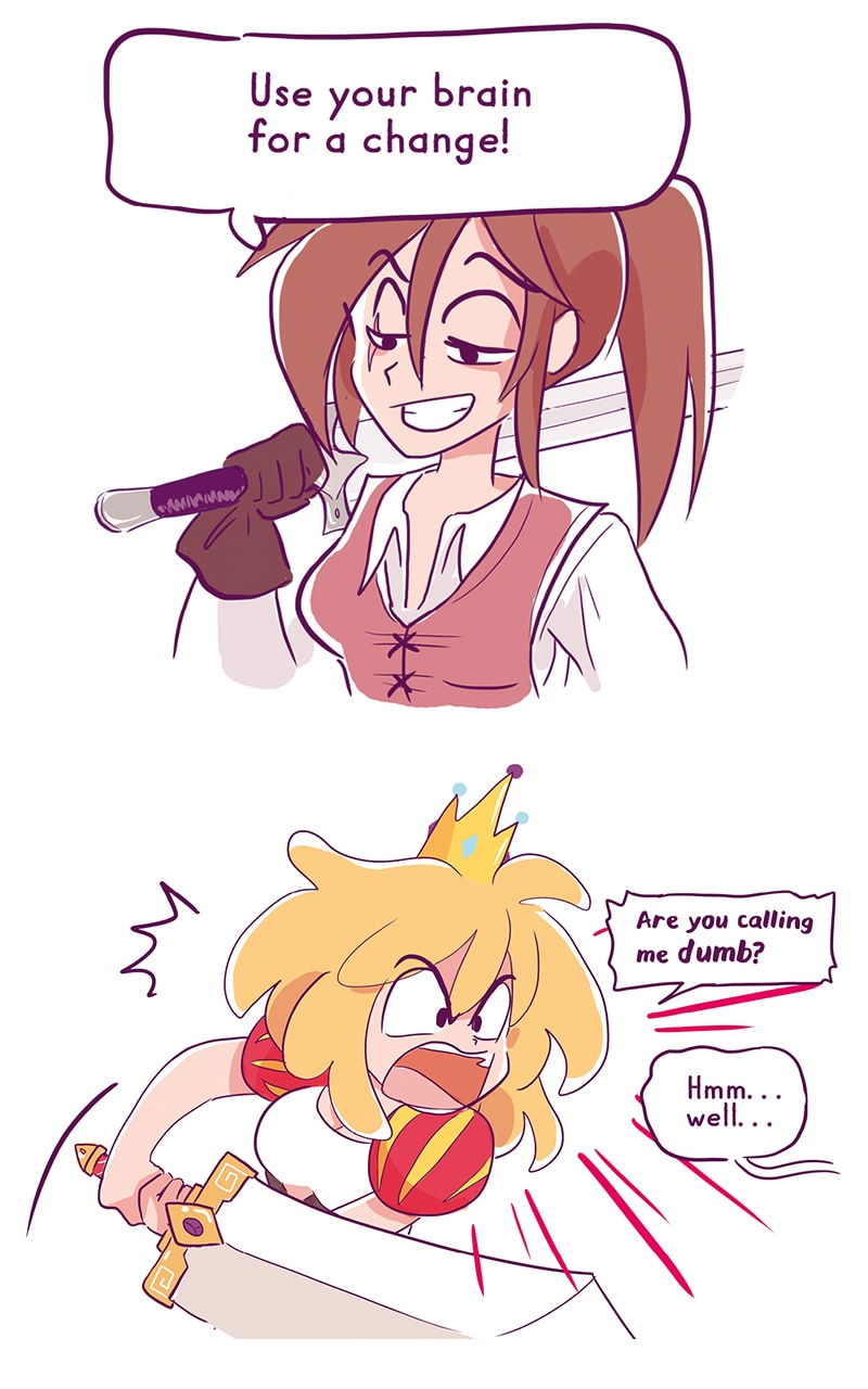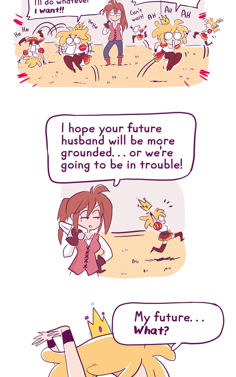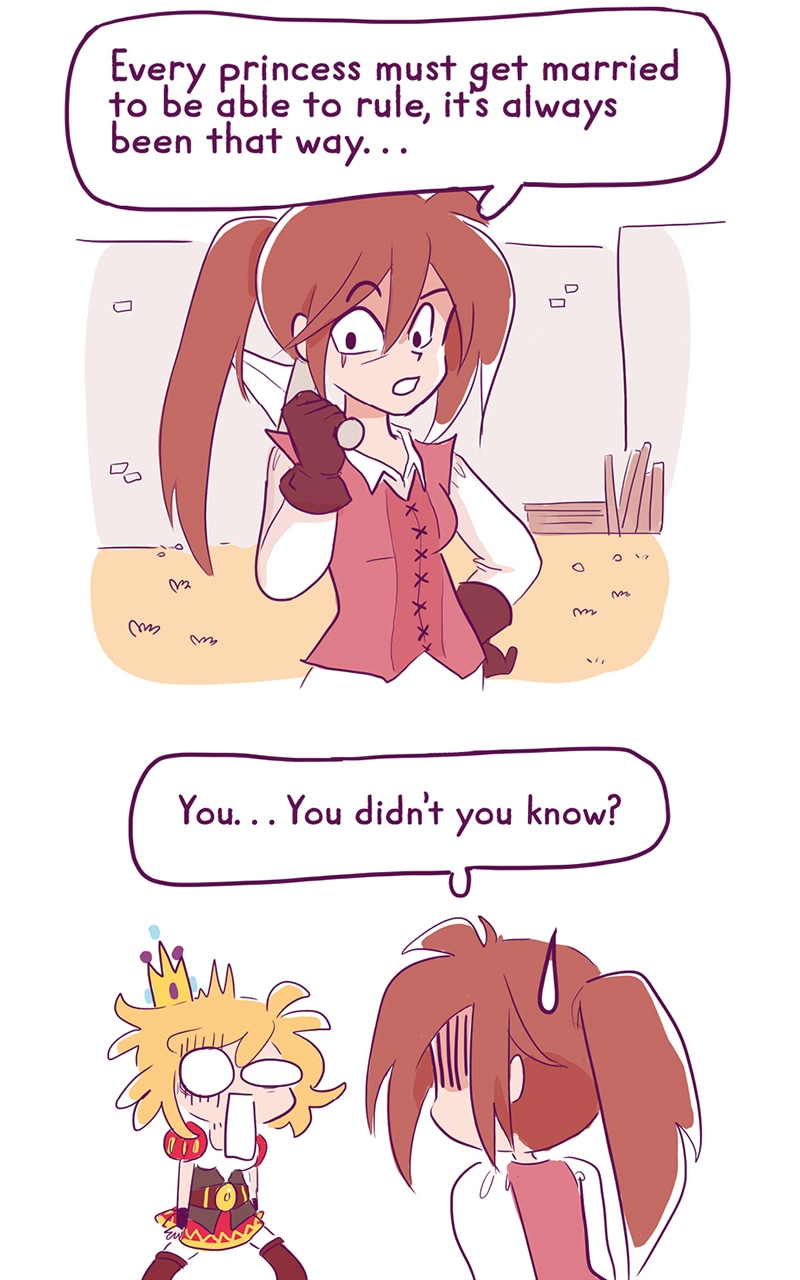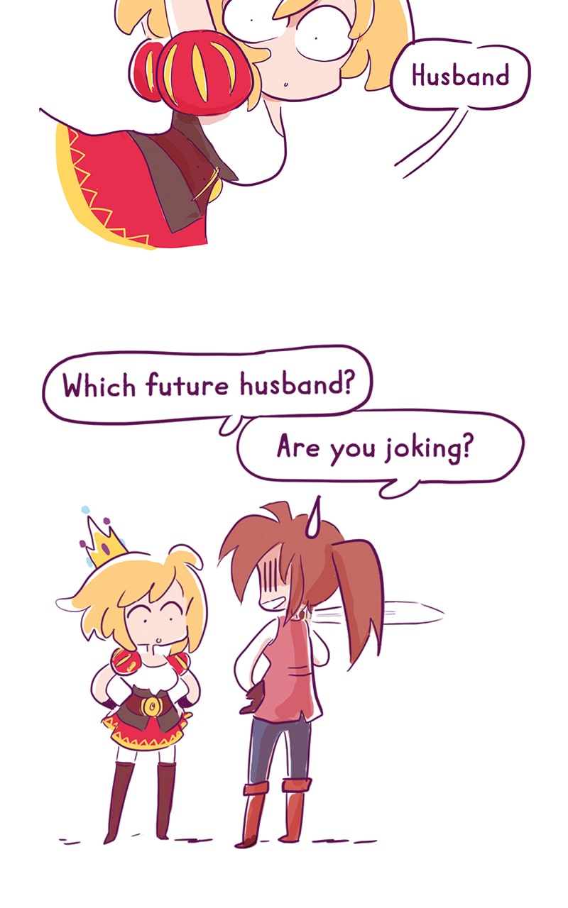 Erika, our heroin, intends to succeed her mother on throne except that.... She doesn't want to get married, which makes things complicated! There is only one way for her to rule the kingdom without a husband, she has to complete a quest: save the princes in distress!