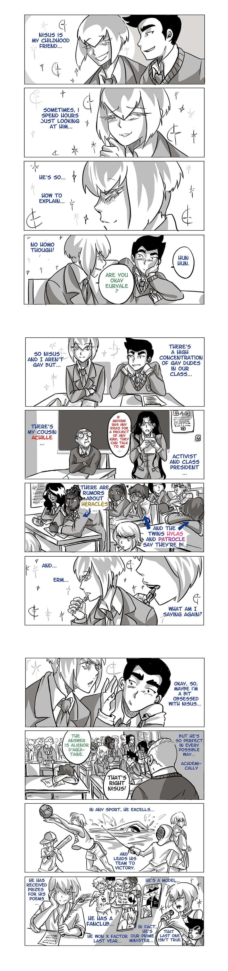 In which Euryale loves Nisus... But doesn't realize he loves Nisus while it will be obvious to the reader and to everyone besides himself... and Nisus of course.