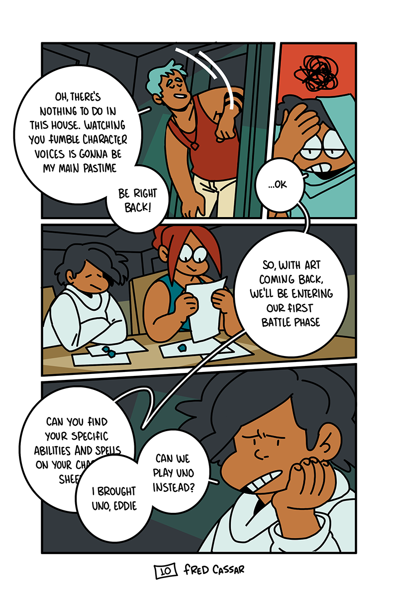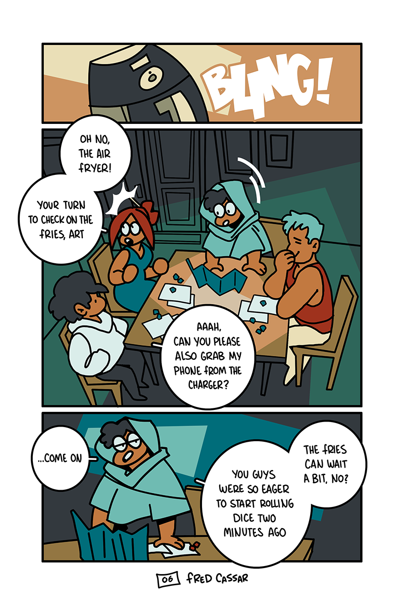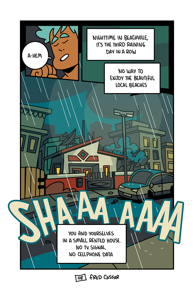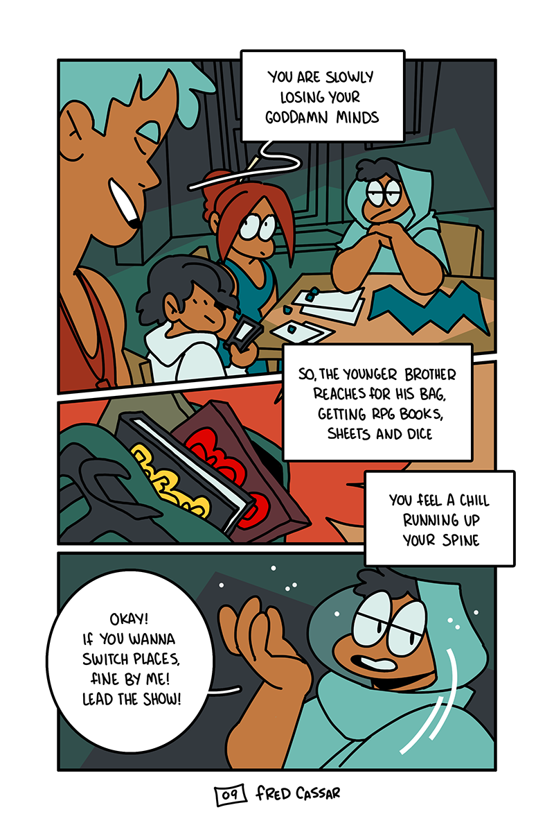 It's a summer holliday and rain keeps pouring down. Stuck inside a tiny rented house, Eddy has an idea for an RPG campaign starring his mom and two siblings. Dice and sheets on the table. They have nowhere to run.