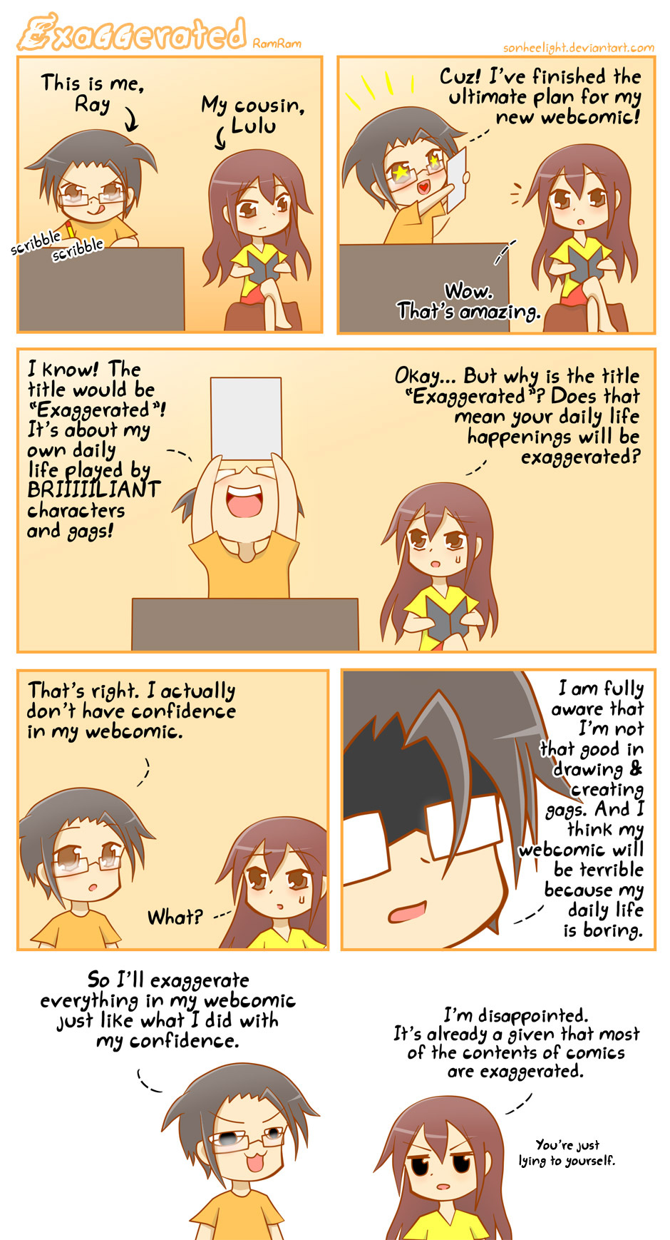 I'm just exaggerating. I'm not lying to myself, am I? Improvements are on the way as the comic progresses. ^^ Please bear with this amateur creator. XD
