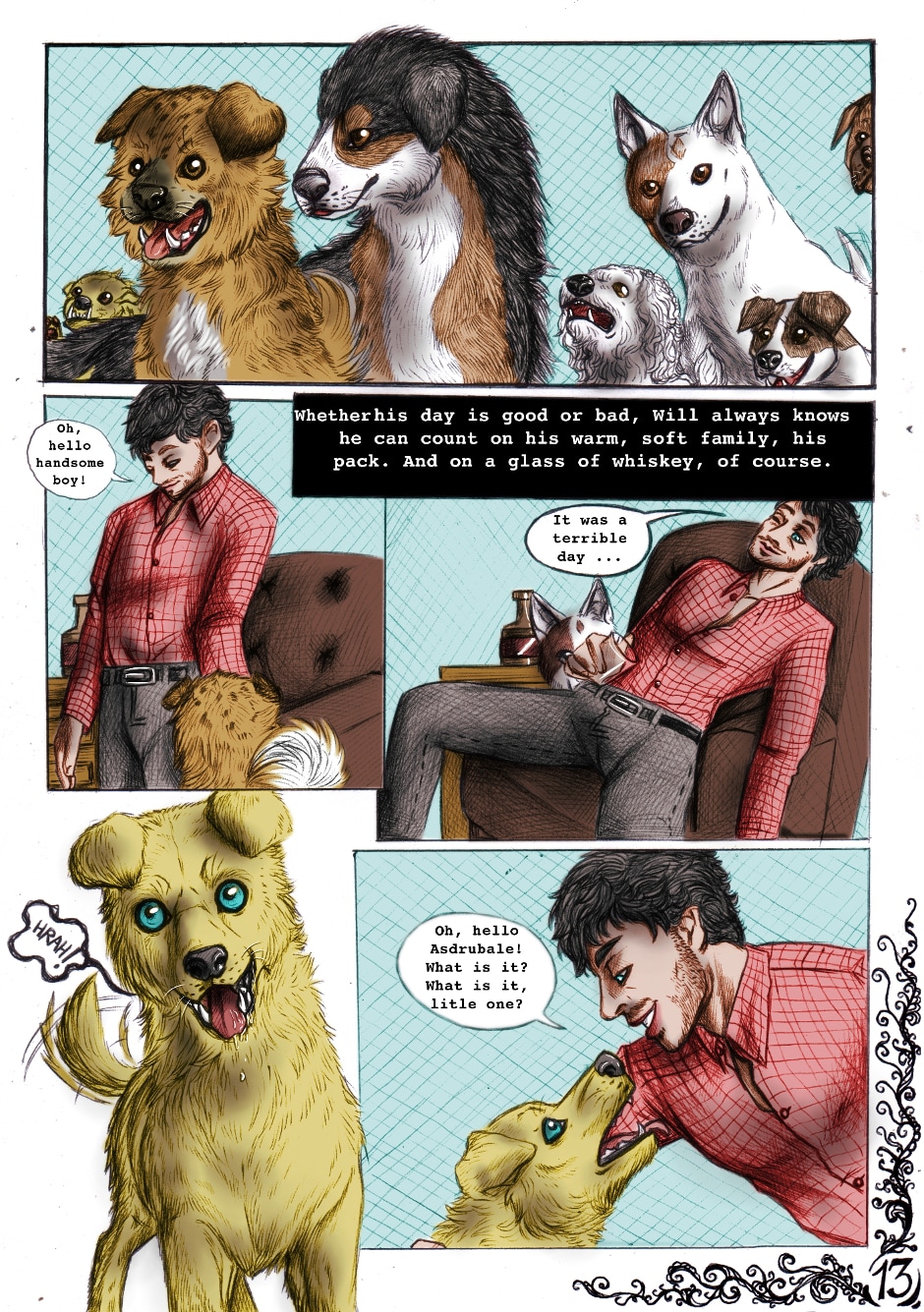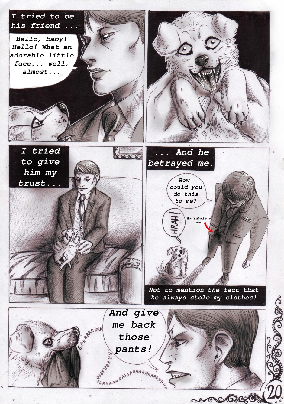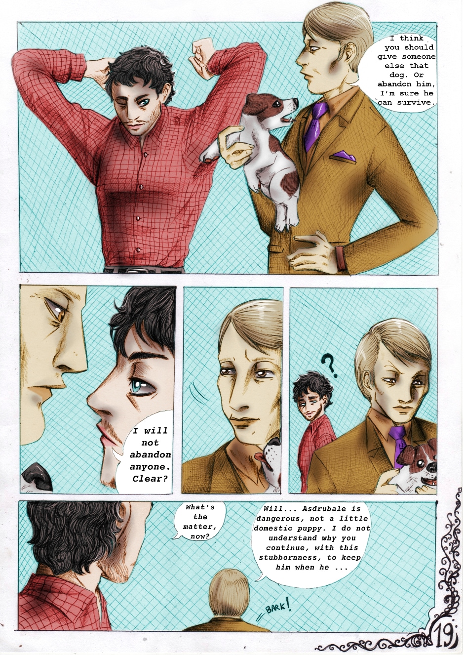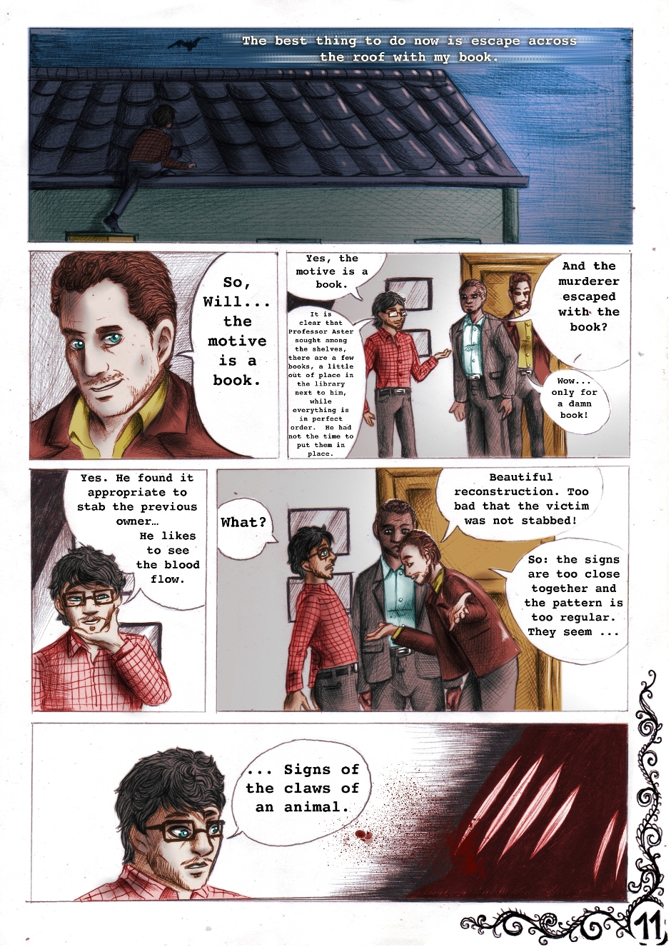 And so starts this new comic series. Here we know Will and Hannibal, main characters of (at least) the first part of the series. And we meet also this "adorable" dog, Asdrubale... Who (or what) is Asdrubale in reality? What means Will's dream? Who is the killer willing to murder an innocent man just for a book? Follow Exoterism and you will discover it!