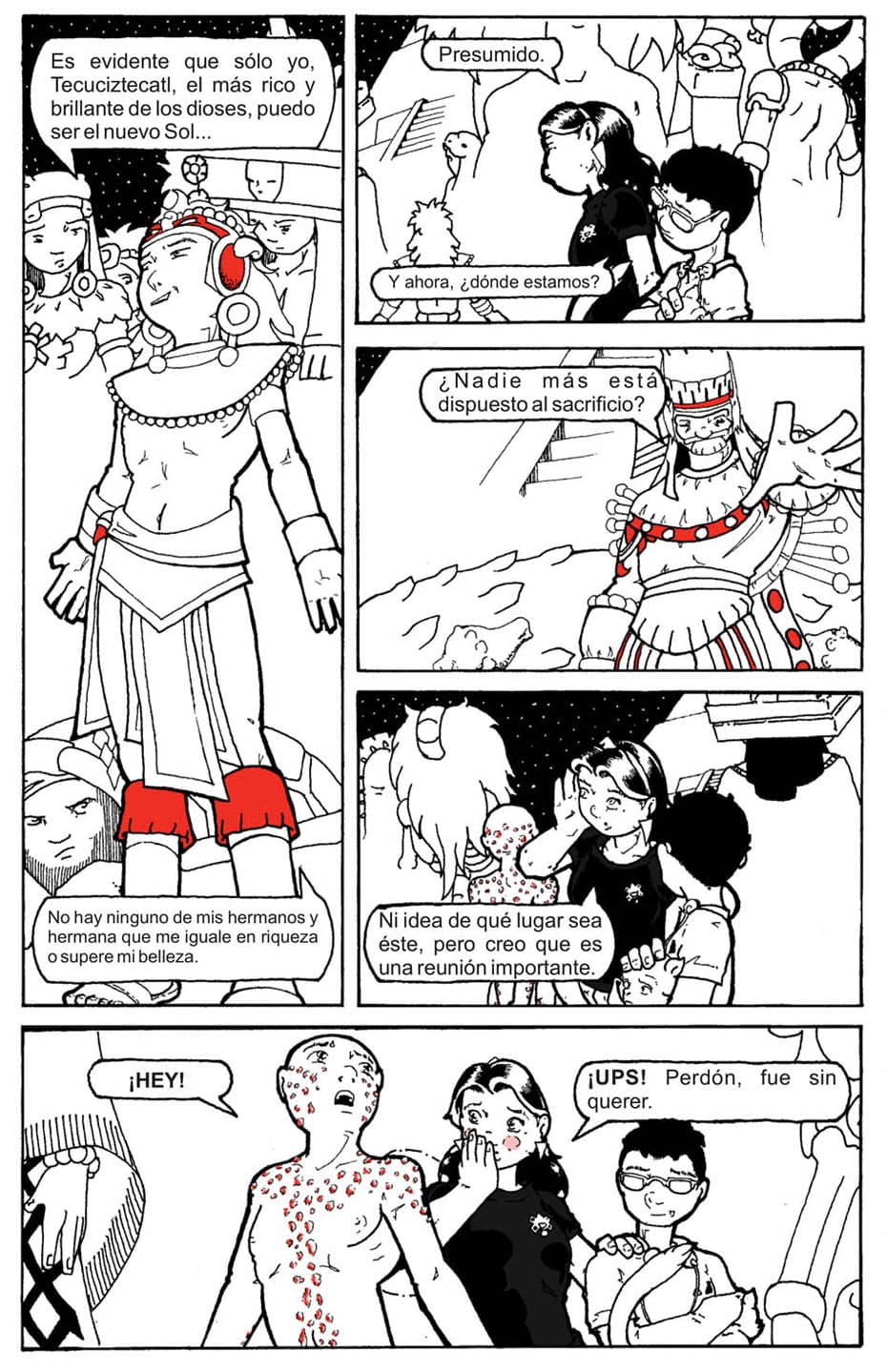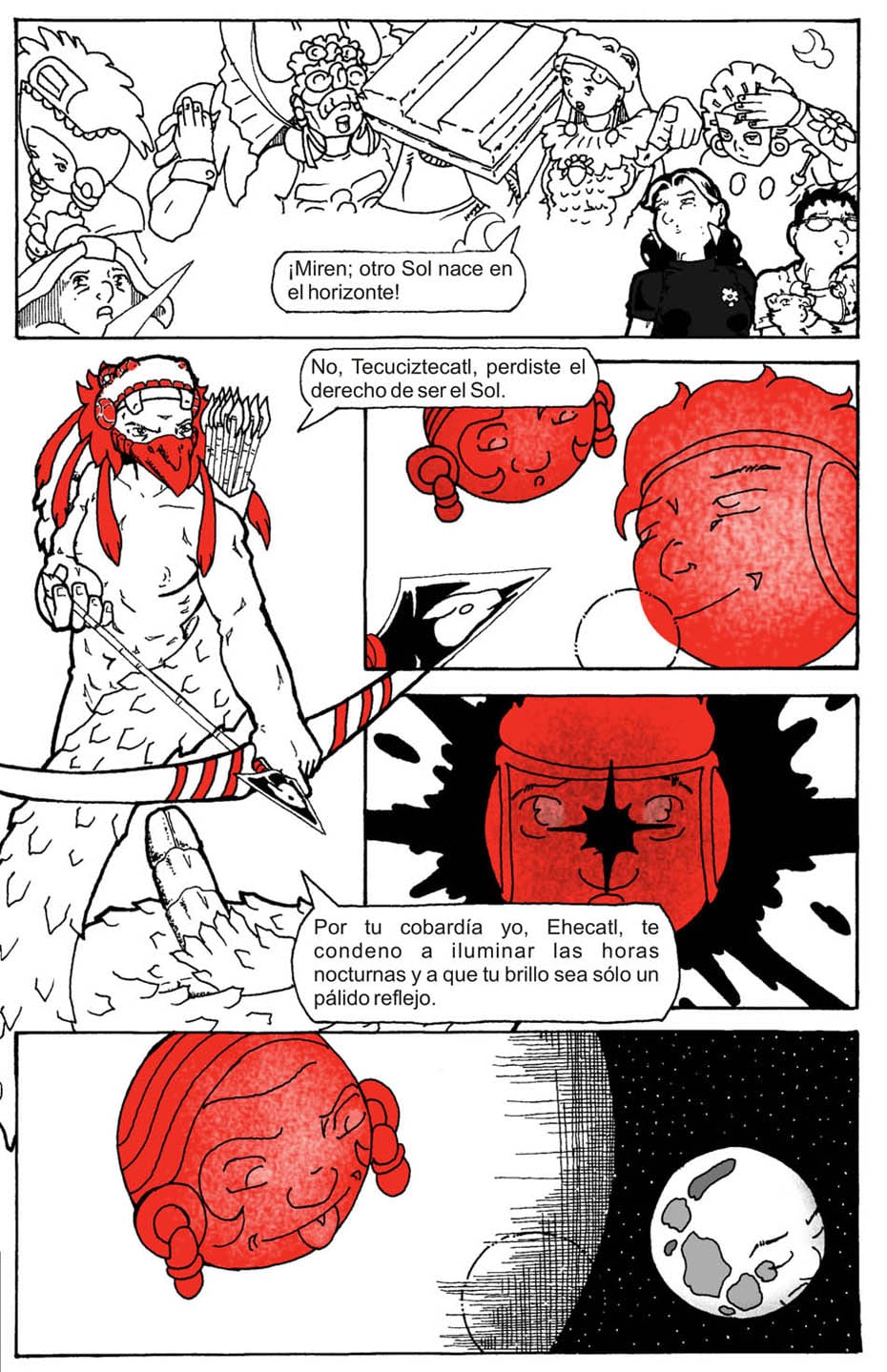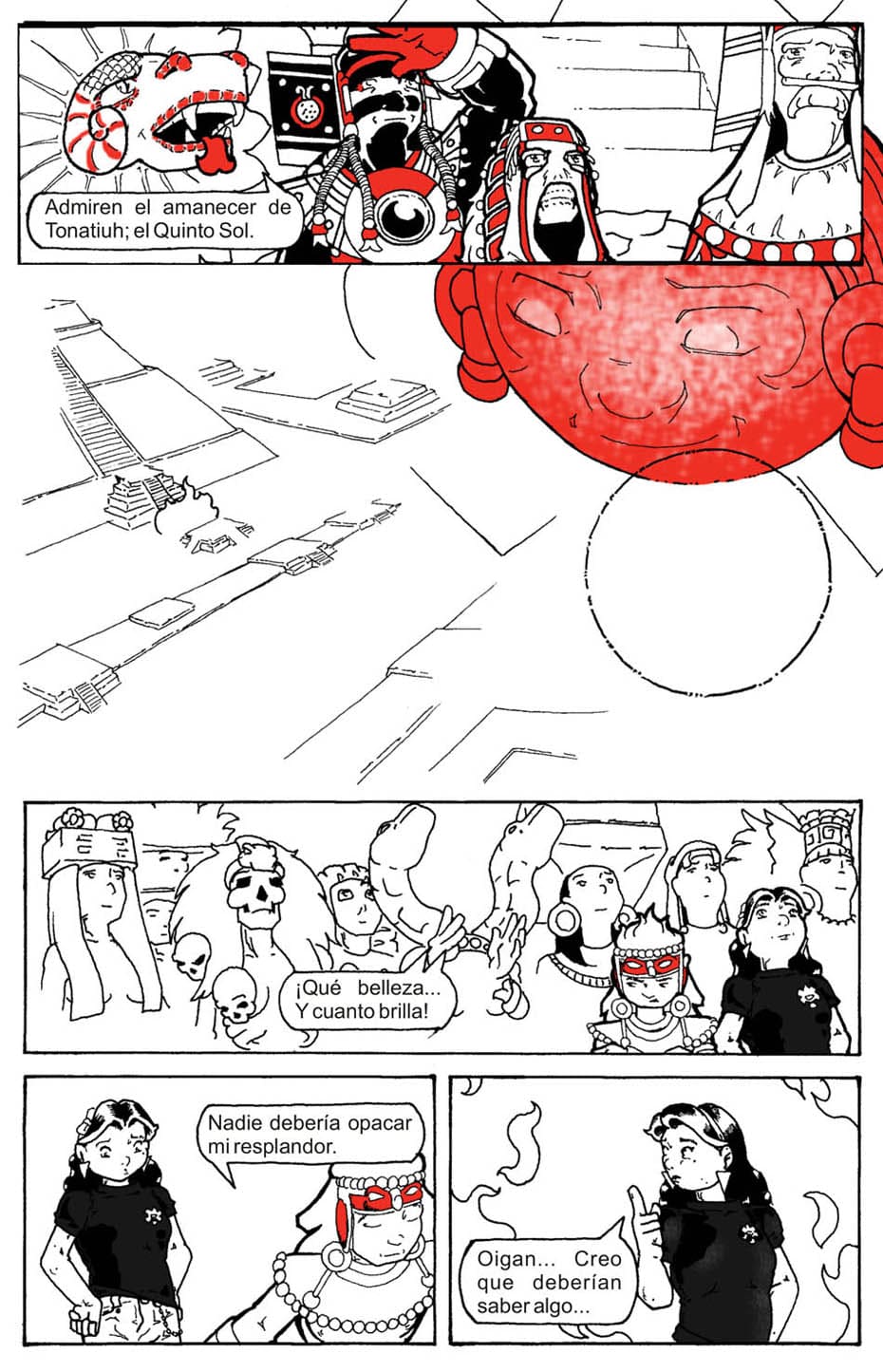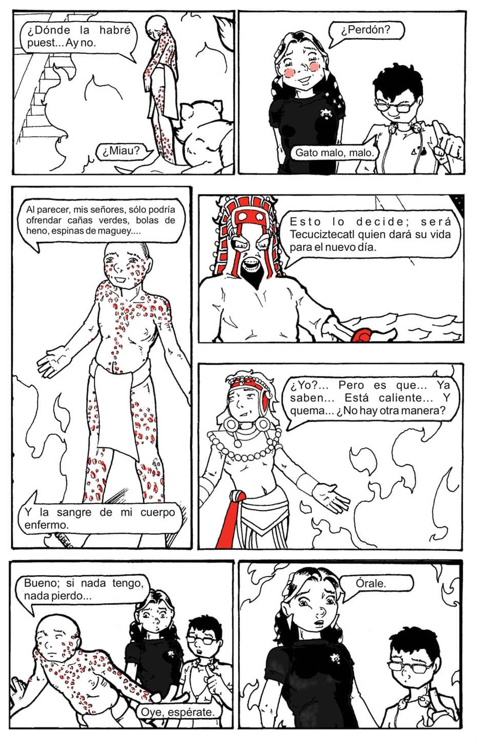 Trabajo en el Museo Nacional de Antropología en México, parte de mi trabajo es generar contenidos educativos. Un proyecto en este sentido era una serie de historietas sobre diversos mitos indígenas y pasajes de la historia precolombina. Proyecto que fue aprobado en su momento y para el que desarrollé el guión de los primeros cuatro episodios y empecé el trazo del primero.