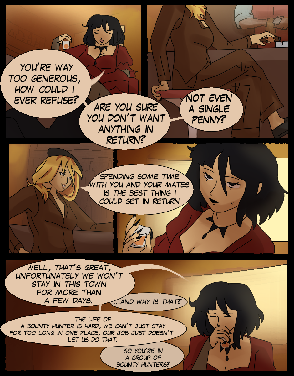 As he leaves the building, he gets picked up by a group of kind bounty hunters who offer to take care of him as he recovers from some sort of temporary memory loss.