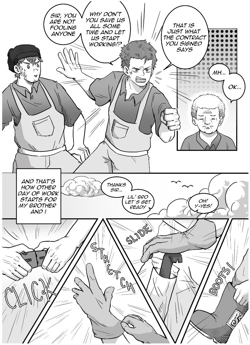 Just another day of work for this brothers: collect some frocks from here, collect some frocks from there. It would be a shame if a multiple legged inconvenience appeared...