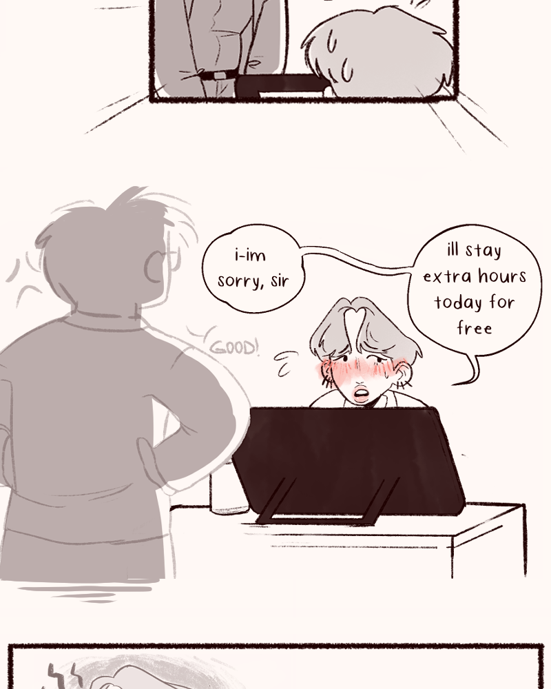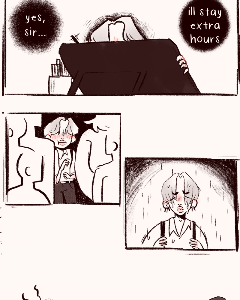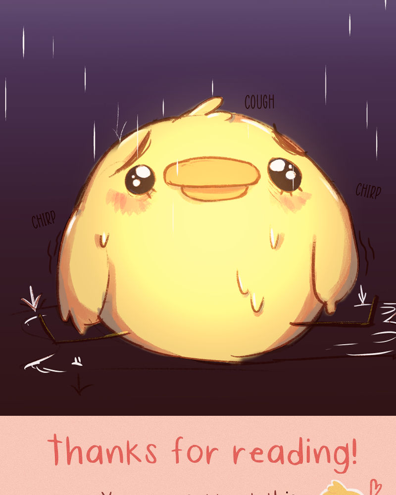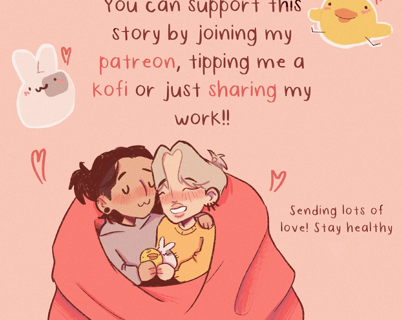 I love the way you drew their hair in the cover 🥺😍💕 It's so very pretty 🌟 I really like that I can feel Jamie's tiredness through your drawings. You convey the emotions very well and beautifully! 🌻 Wonder who the chickie is... 👀