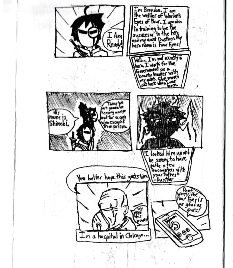 Son of the legendary hero Paper-Face and new member of the Turnaways makes Brendon Warden a big target to major villains like Calson. Brendon, while doing his regular hero work, is kidnapped by an old enemy of Paper-Face (Shinobi).