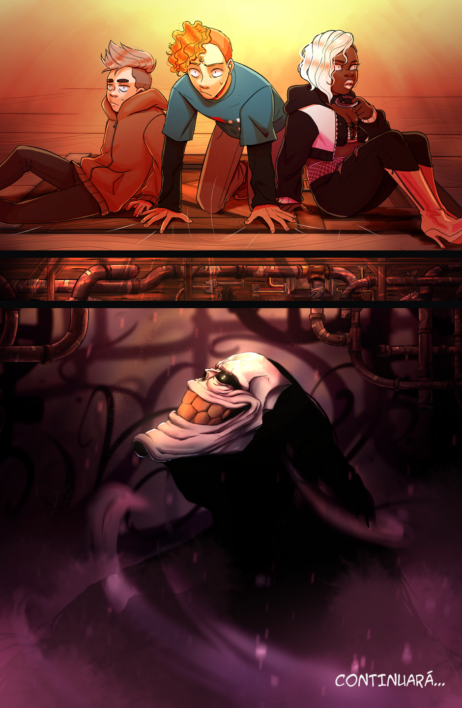 Oye, pues la historia de momento mola mucho y el arte es también impecable (el diseño de Morgan me encanta). Tengo que decir que el fantasma/monstruo/entidad/lo que sea es increíble, da la sensación de payaso diabólico que busca causar caos para todo y todos. En conclusión, que me suscribo xd