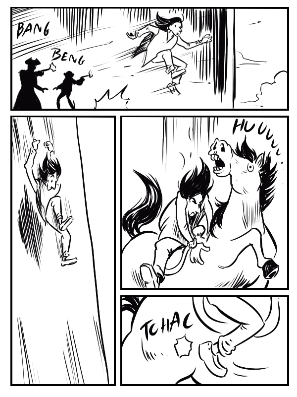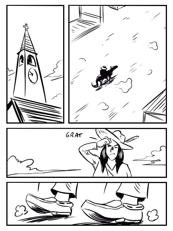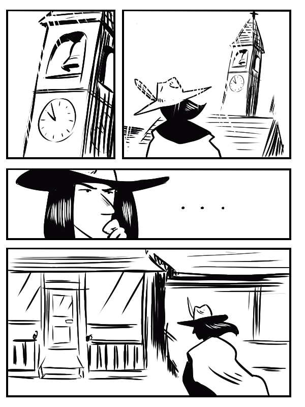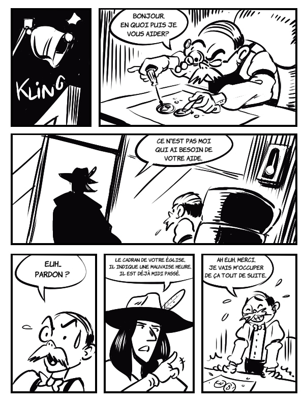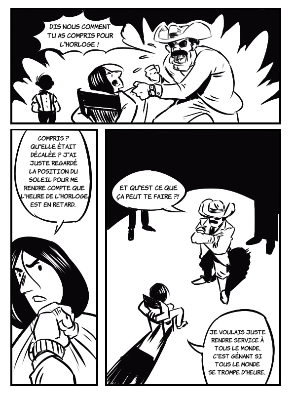 Histoire dessinée dans le cadre du défi des 23h de la bd. Le thème était "western" et la contrainte "un personnage porte une grosse horloge".