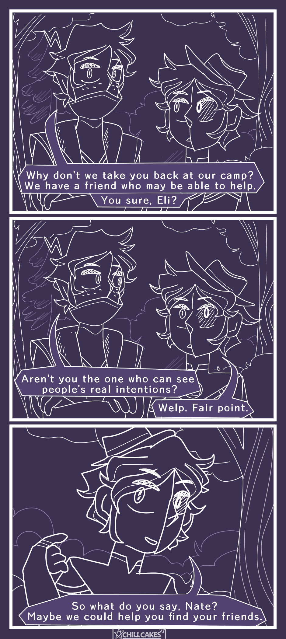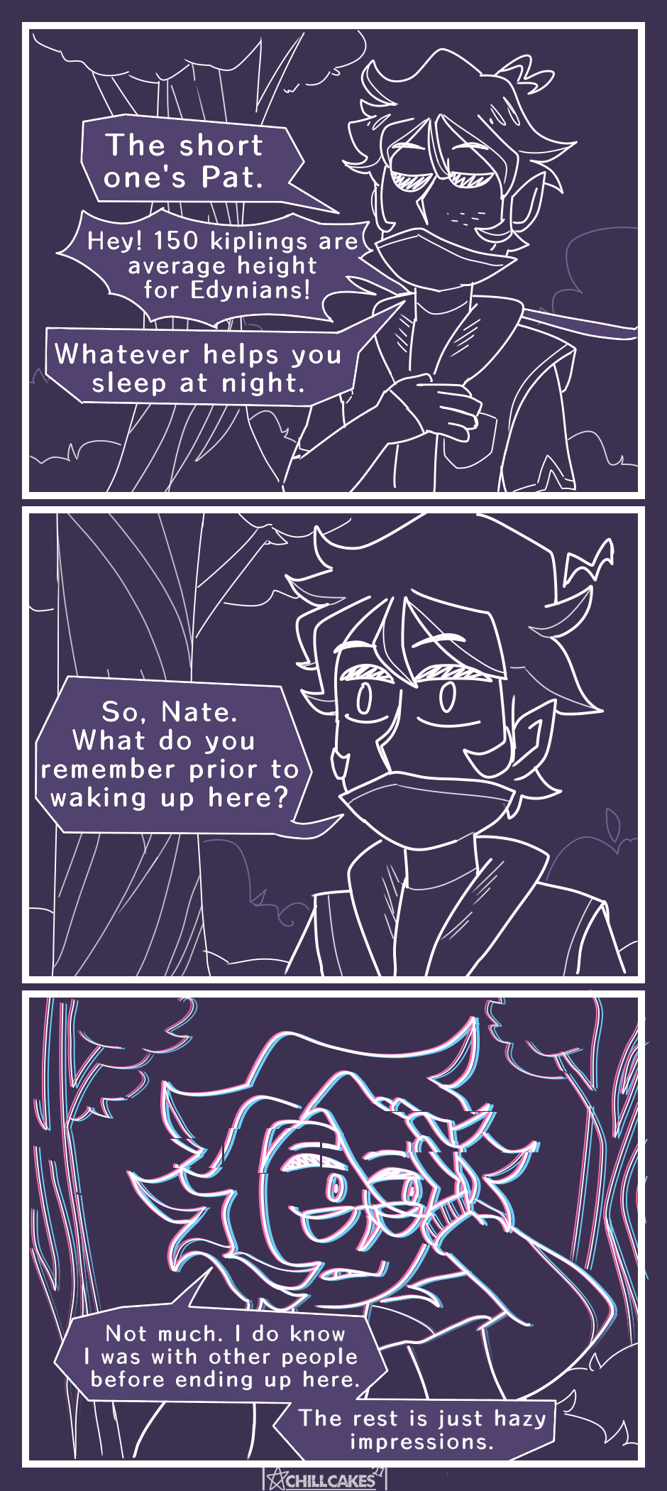 Nate wakes up to find himself in a dark forest with no memory of what happened to him. Two strangers accompany him back to their base camp. They seem friendly enough.