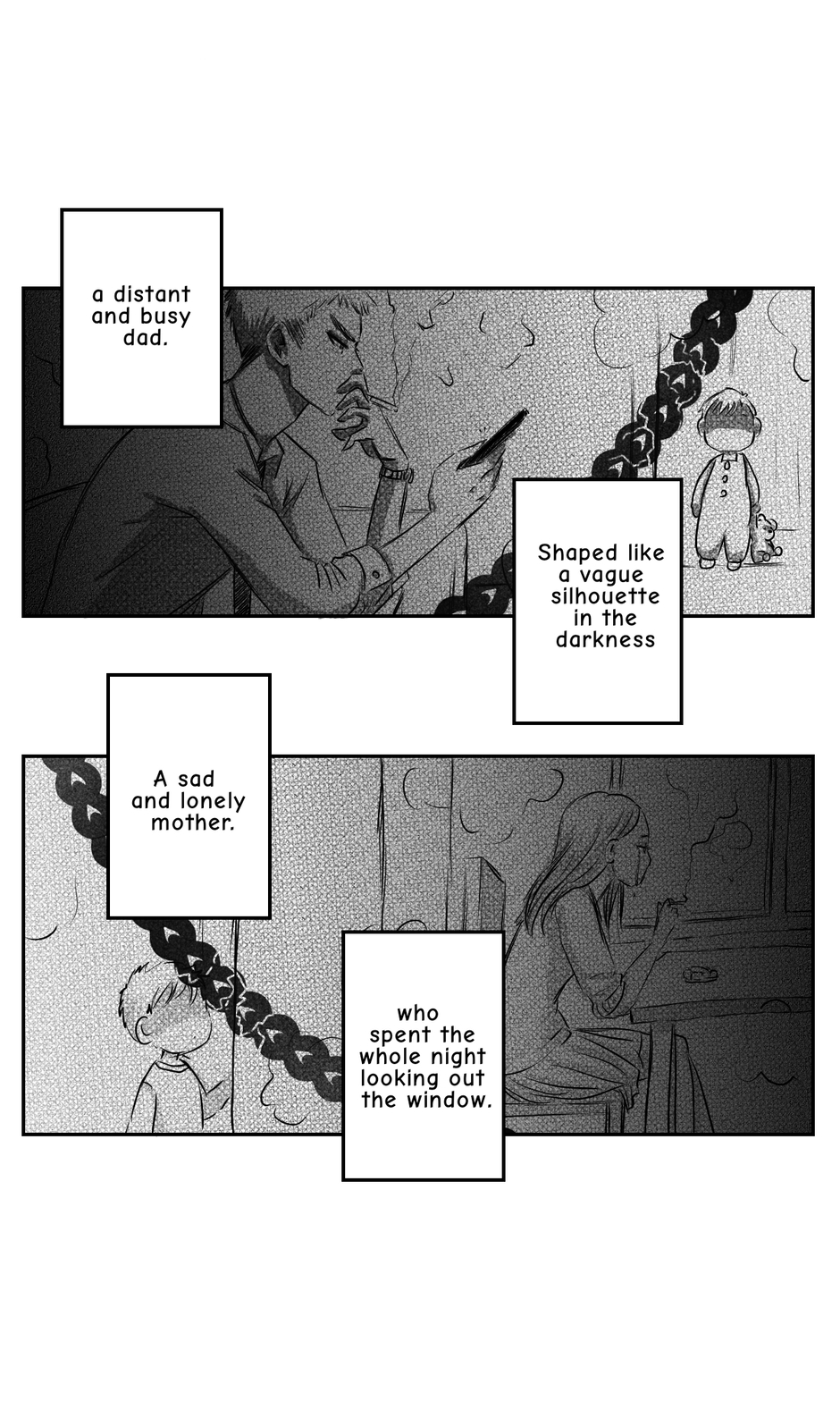 Kenny's destiny is expressed through suffocating chains that insist on clinging to him. A new chain for each new person in his life, one less chain for each person who leaves his life.