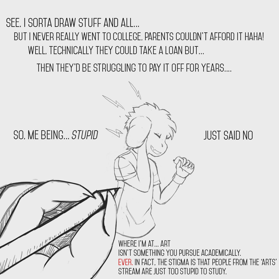 Hi there! It's been a journey and a half, I'm not a person who does comics that often so it's often still a struggle to come up with things. That and, it's quite emotionally draining at times!