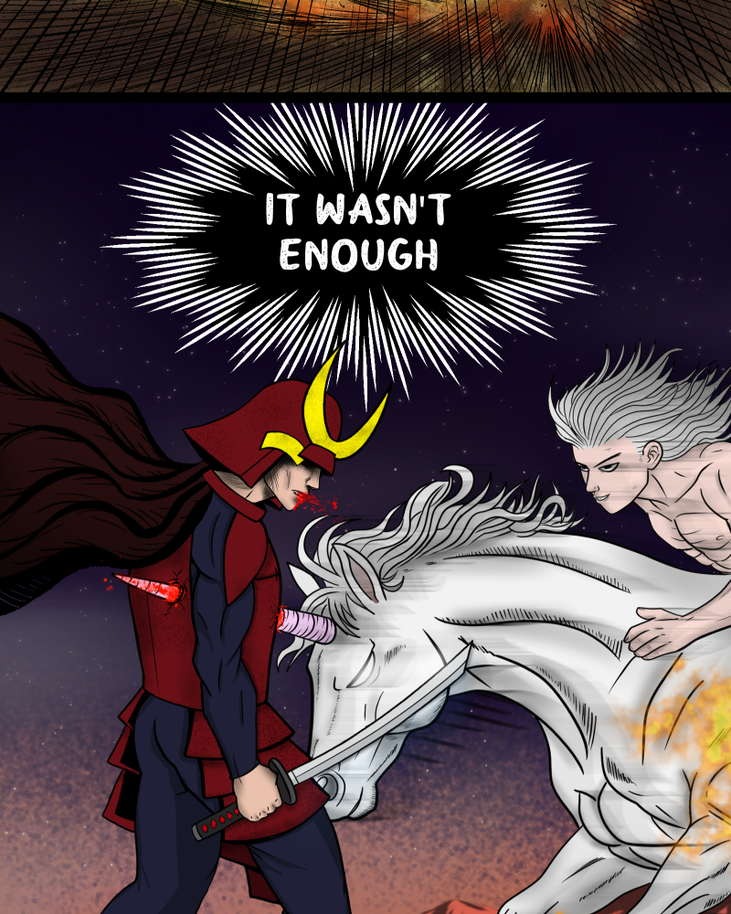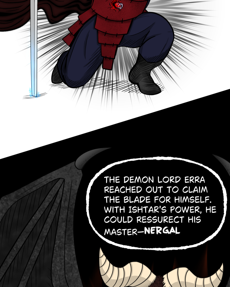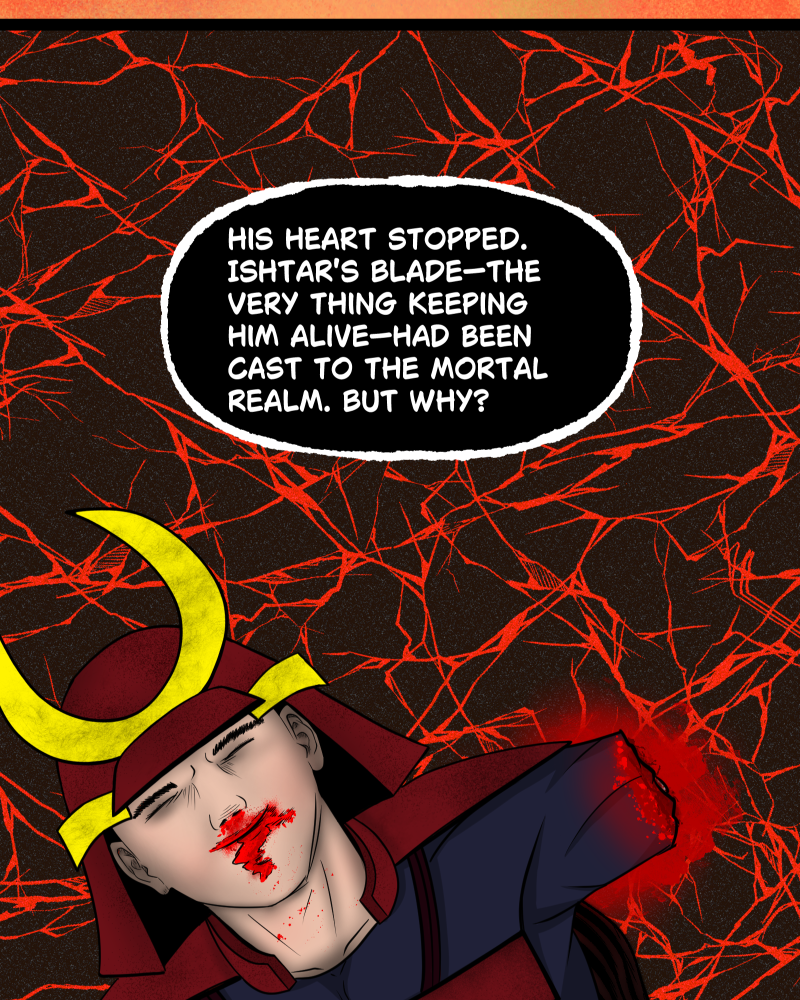 Shibo Onigiri is an overweight, broken man accidentally chosen to wield a cursed demonic blade in a war between humanity, demons, and corrupted gods. When he meets Ishtar, the Goddess of War, a dangerous bond begins to form between mortal and god. Is the world worth saving? Can he find love if he does not love himself? This series updates biweekly!
