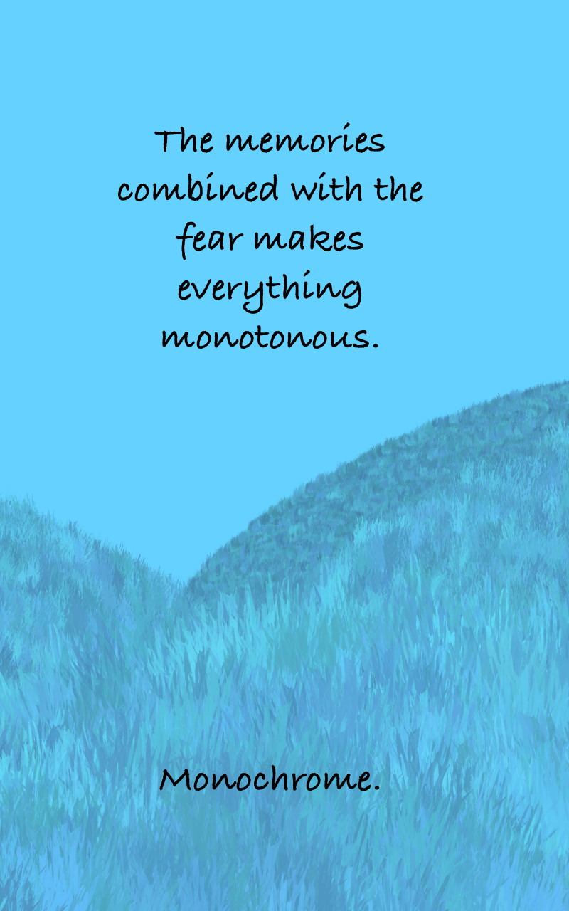 What do you do when fear has consumed you and taken your will and your mind from you? You don't live. You don't die. You're not real anymore, but simply an animated conscience in an animated body. | Updates when I can update. (Themes of people in minorities, such as: BIPOC, Women, LGBT, inhuman species, etc.) Trigger warnings: Suicide, self-harm, blood and violence (Mature Audiences)