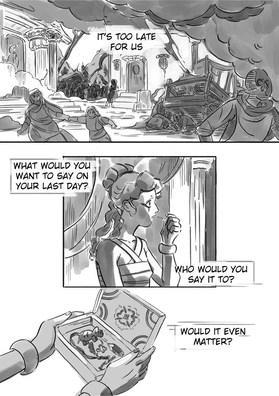 Hi everyone, I hope you enjoyed this quick little story. I made it in about a week so I could take part in an anthology my friend was organising at the beginning of 2023 :) since it's been over a year I figure I could share it with you here. I'd love to know what you think!