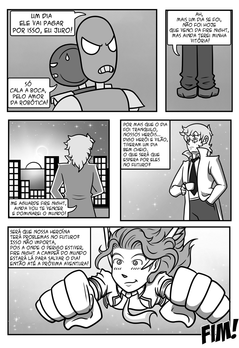 Então te apresento Fire Night, a heroína campeã do mundo, que além de salvar o dia, é apaixonada pelo cientista do mal chamado Roy, que pretende dominar o mundo, mas... é impedido todas as vezes por ela.