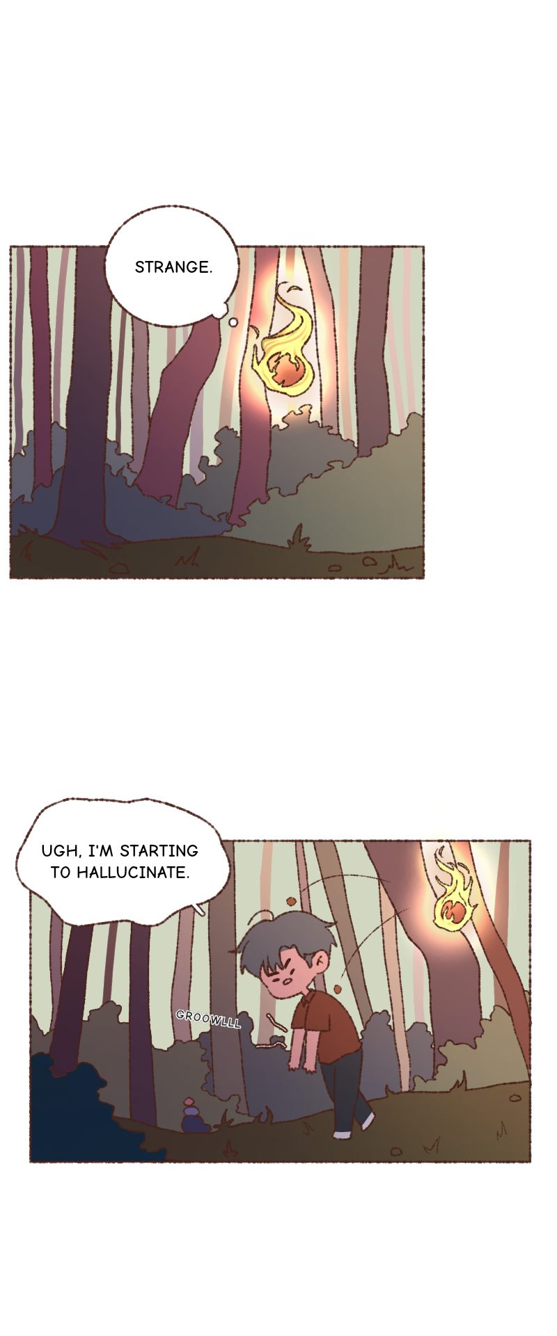 Galih wakes up in the middle of nowhere and finds a strange fire creature flying towards him. Actually what is that thing? what happened to him?