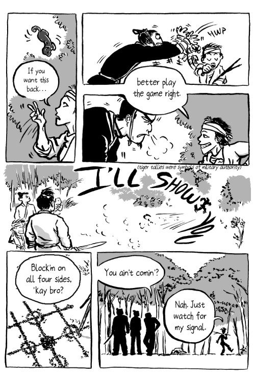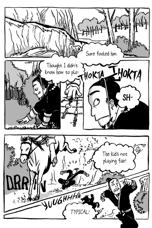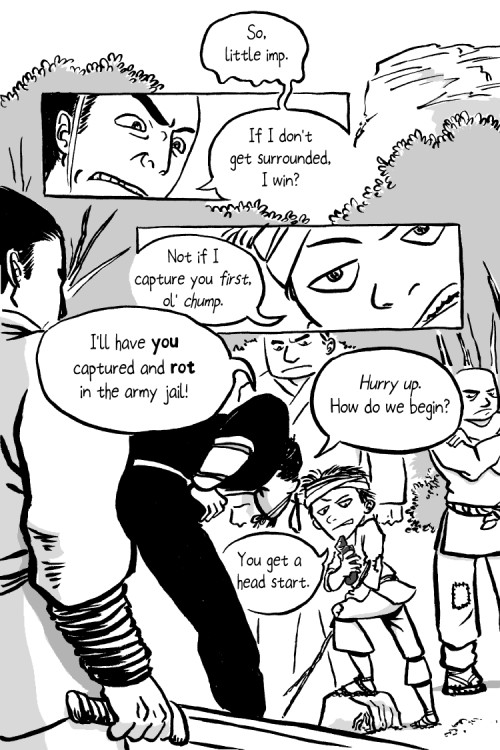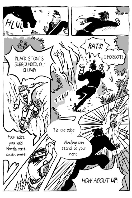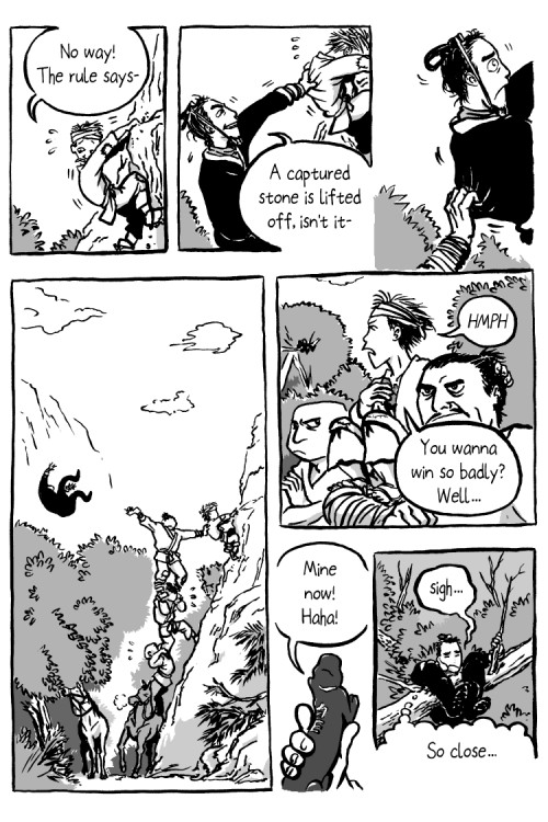Bandit kid has just learned how to play Go, and when a royal courier took a shortcut through his territory, he's going to test his skills on the unlucky fellow.