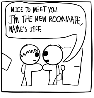 Jeff moves in with his new roommates.