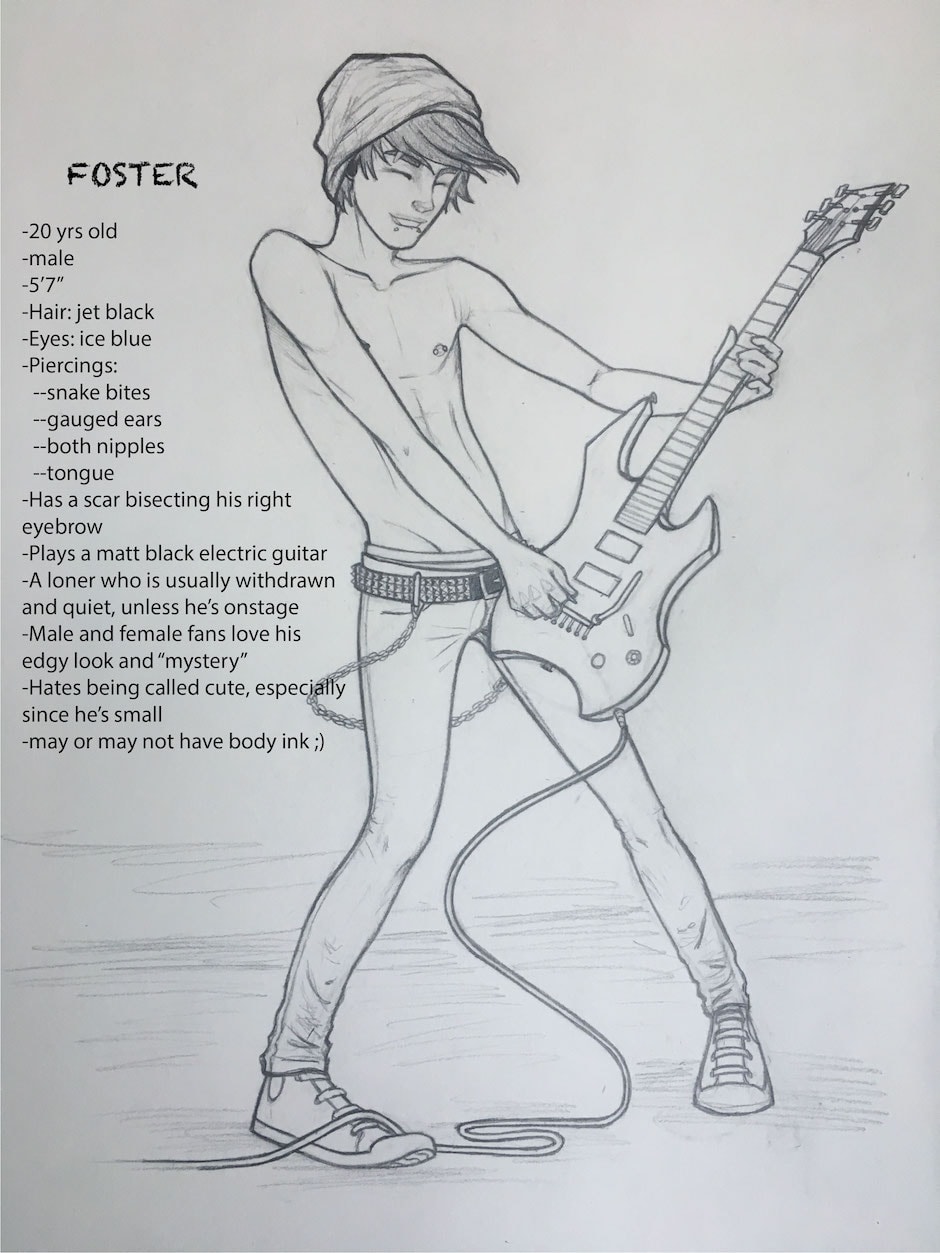 (Note: he is usually very withdrawn, but being on stage is one of the only things that make him truly happy. I really wanted to draw his "happy stage expression")