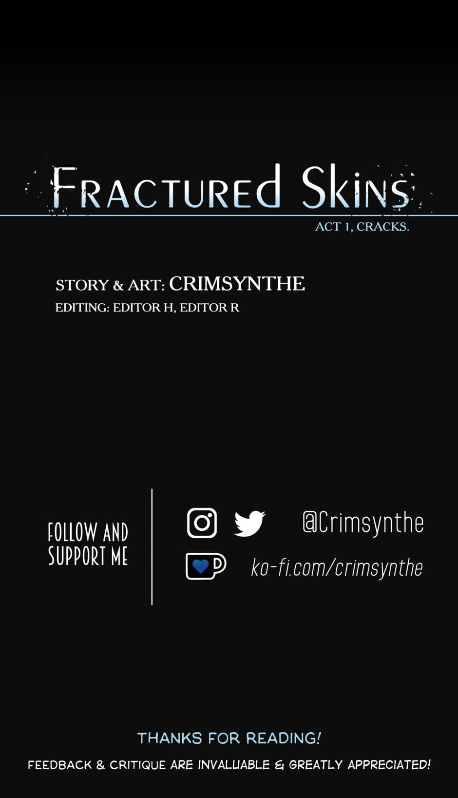 The story means so much to me and I'm super excited for this relaunch! Thoughts and critique are always super appreciated! Also a huge neverending thanks to Editor R for the pro editing and polishing during my struggles ;-;