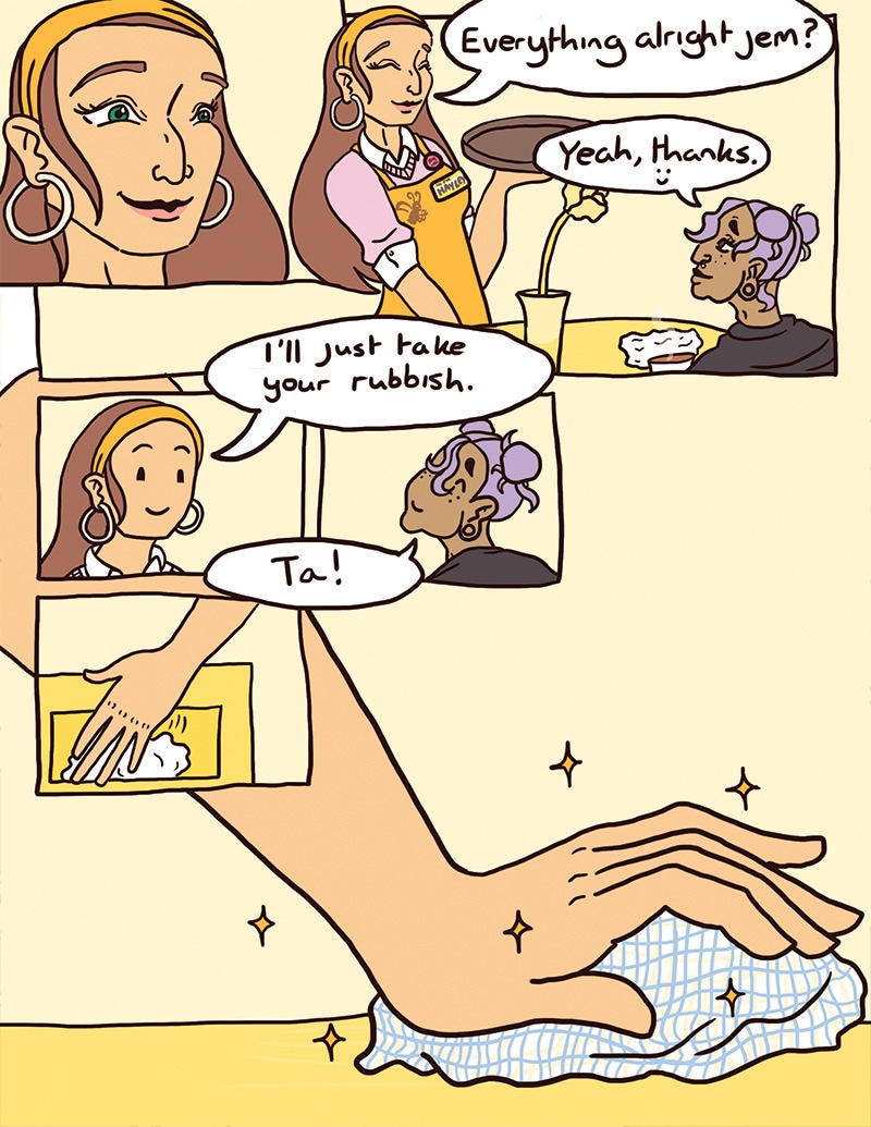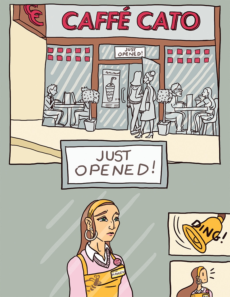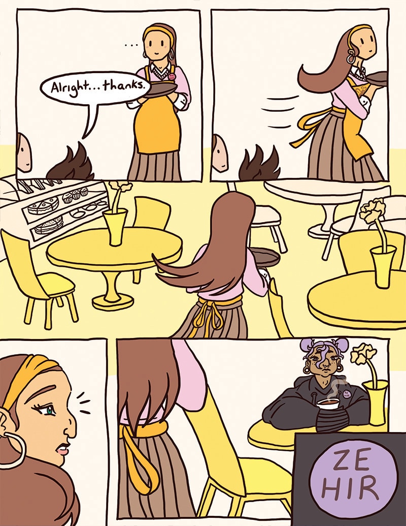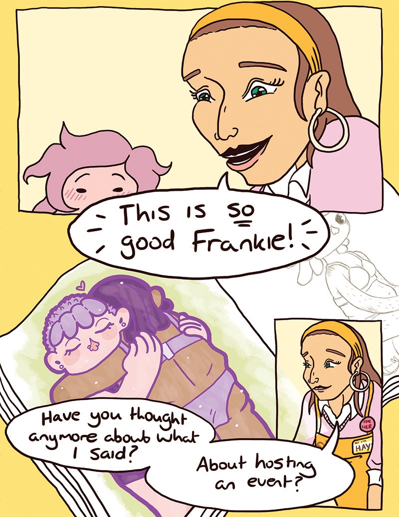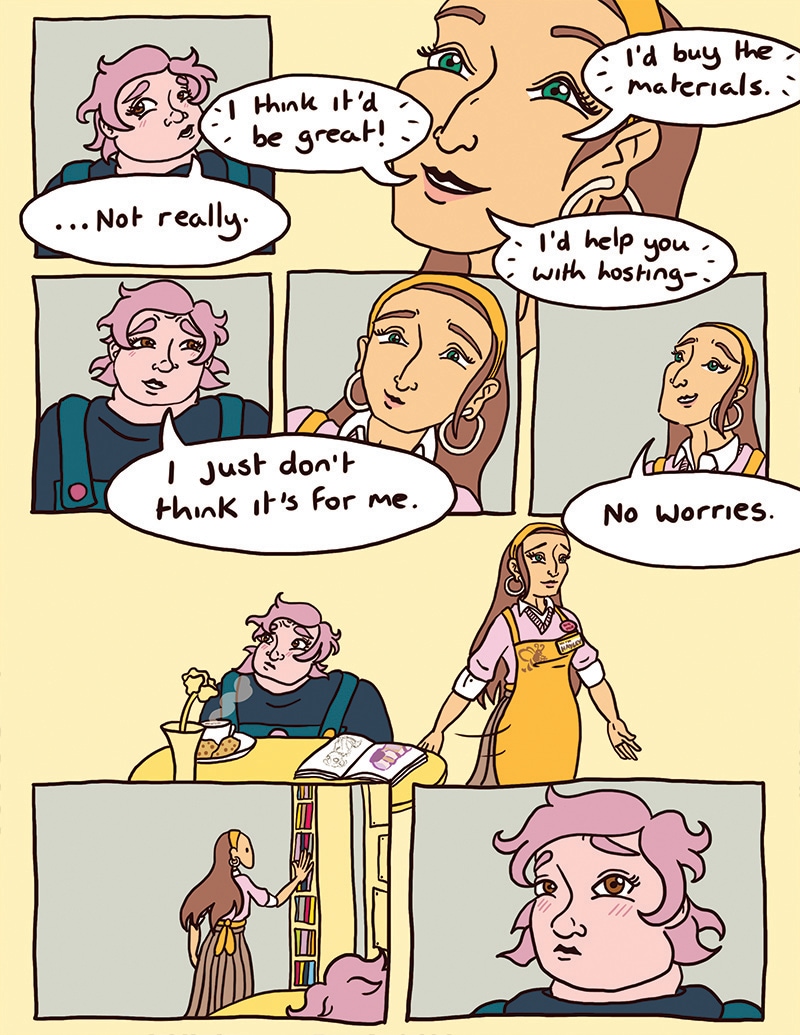 Frankie, an introverted enby lesbian, becomes a regular at a queer indie coffee shop, Busy Bean. The coffee’s great, the atmosphere’s relaxing, and the owner, Hayley, a bubbly lesbian, happens to be pretty cute.