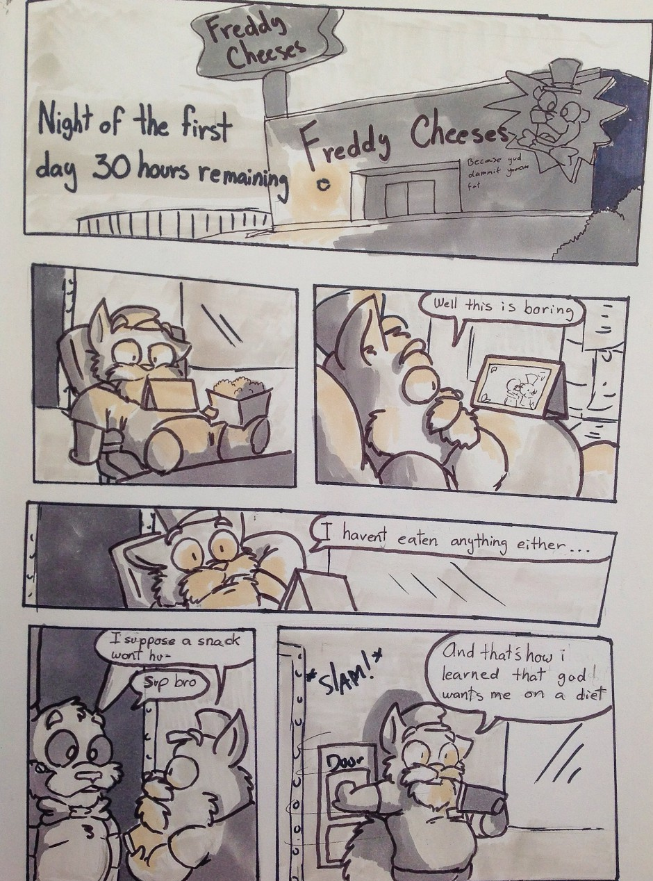 Gag that came up between friends, sometihng that "do you wanna know why big kids love freddy?", so i kinda though it would be funny to see that in a comic