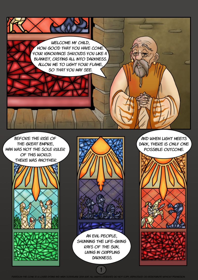 Freedom has been in the making since 2009, but these early pages were created in the beginning of 2013, so there will be a style change as pages are added.