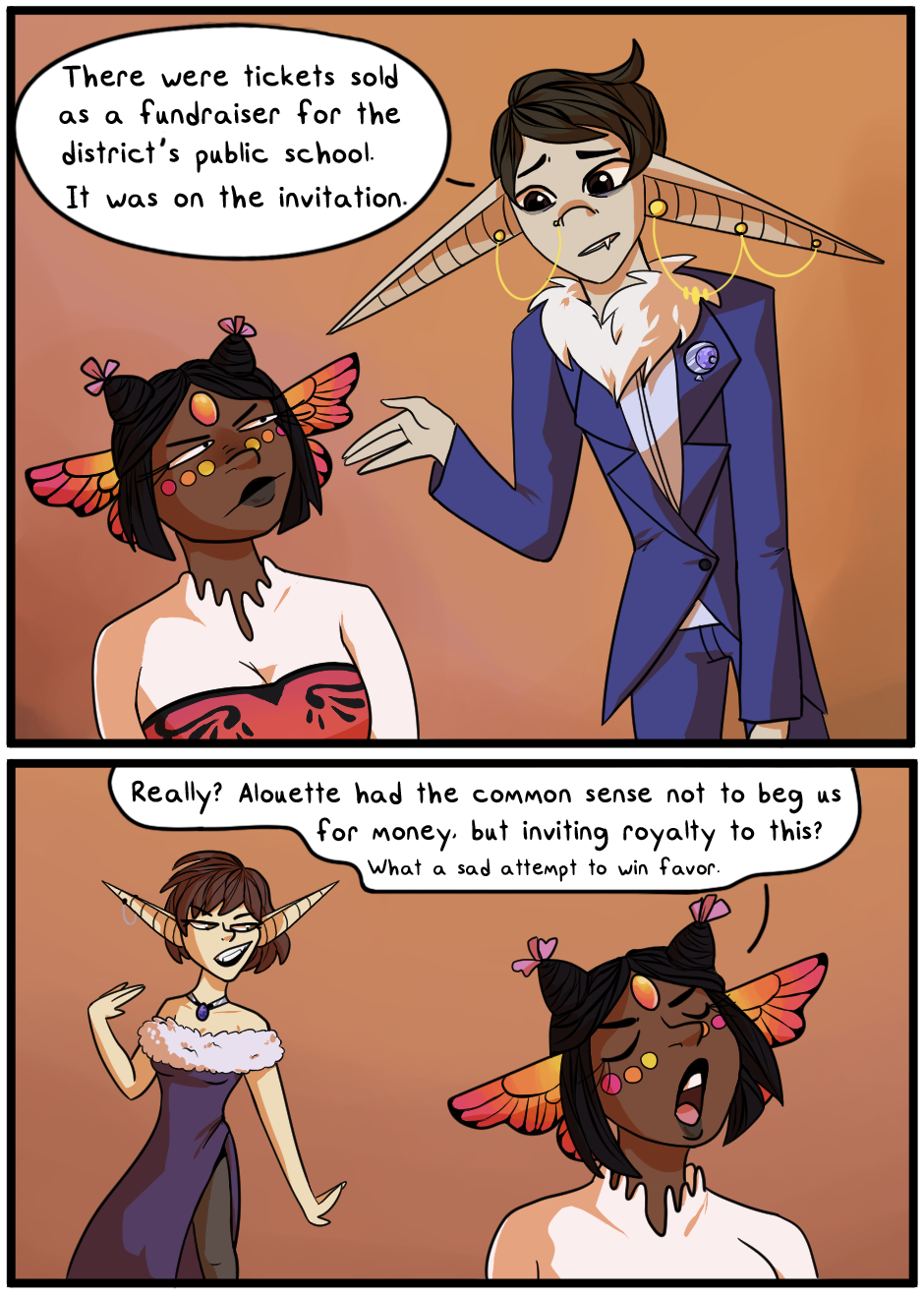 I found your comic on a Discord server and read up to this point; I kind of suck at actually writing out my thoughts though so I recorded them here instead: https://youtu.be/ld-Tl-Jz9X4