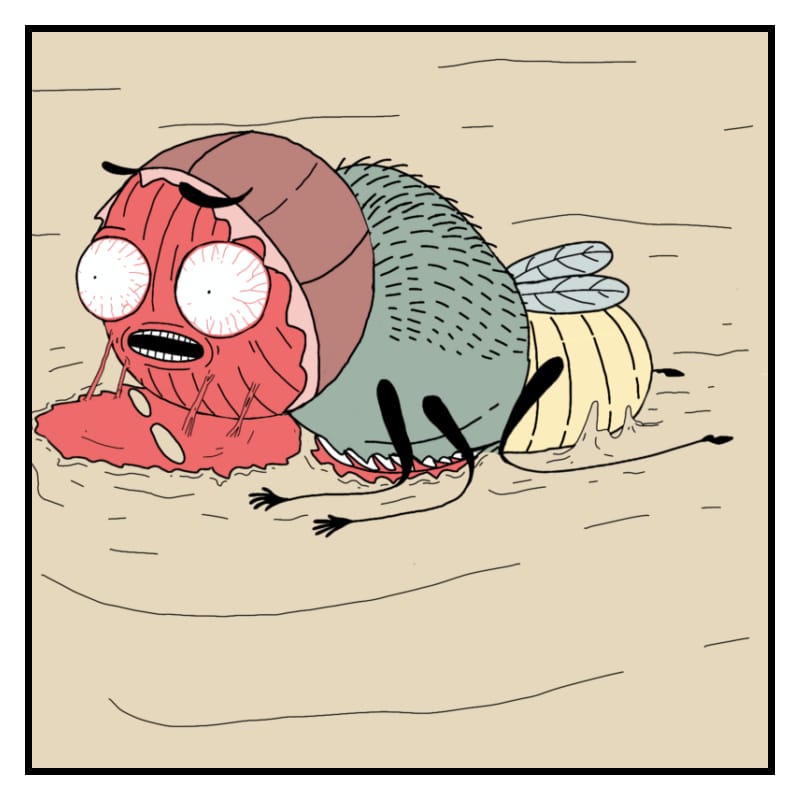 the fly trapped on the flypaper