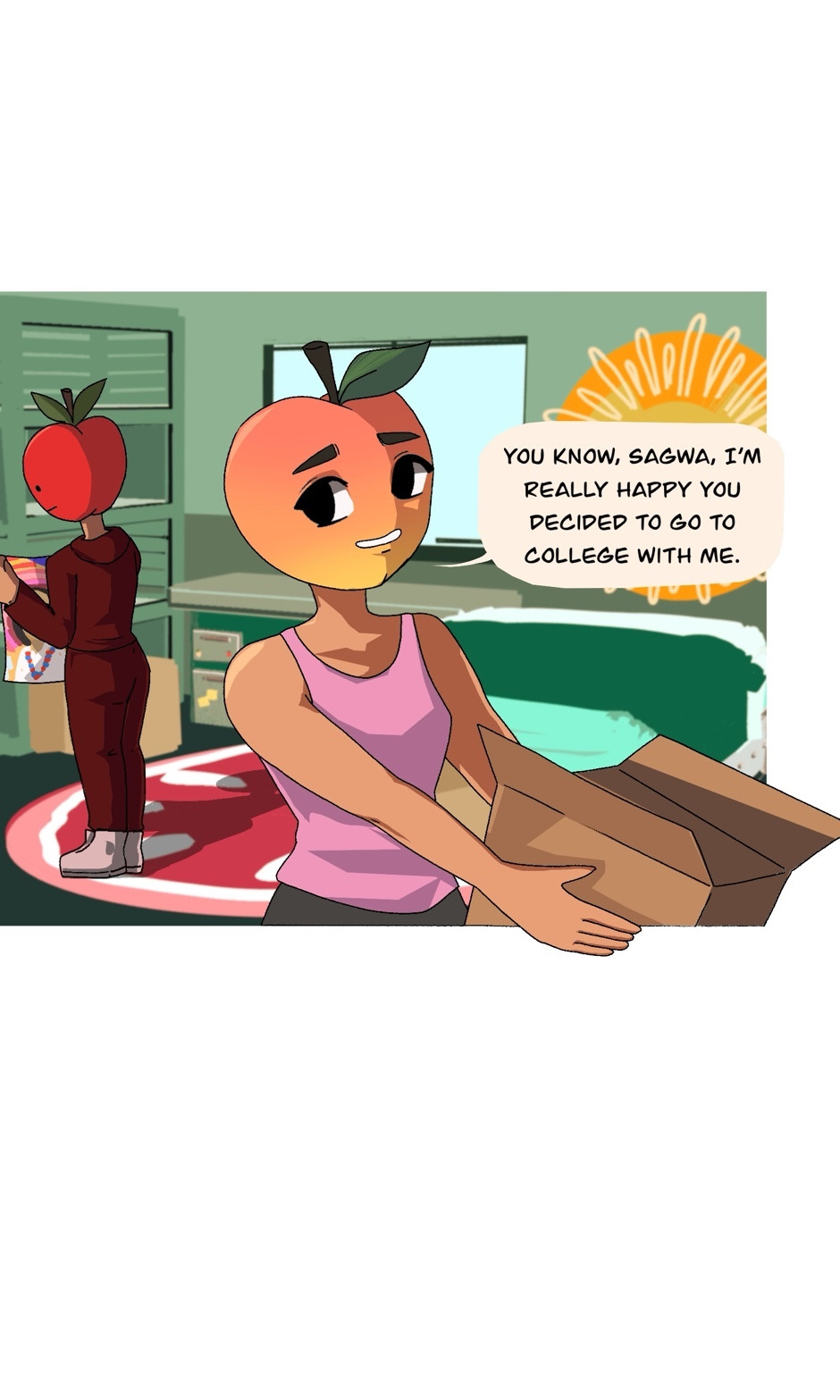 Episode split into two chapters due to size limits on Tapas.