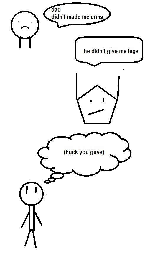 Meet our cast Circle: He is circle with no arms Pentagon: A geometric being with no legs Bob: He is an accountant with no mouth.