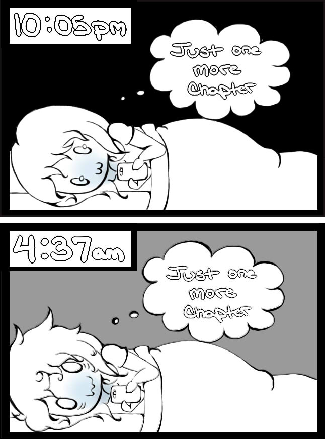 I did this too with my light novel... On a school night, sleeping for two hours, major tests in all my classes. :3 I have a problem