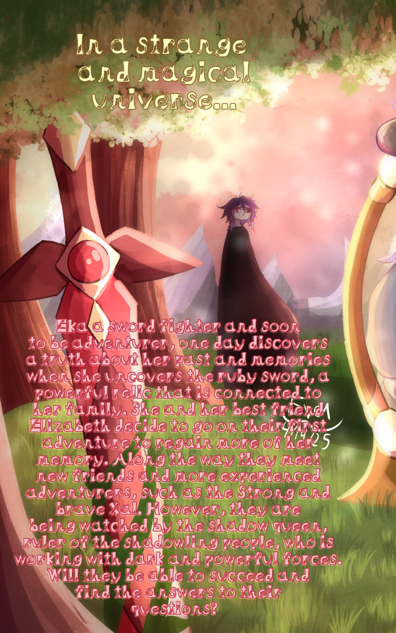 Eka, a sword fighter and wannbe adventurer, one day discovers the ruby sword, a powerful relic that is connected to her past. She goes with her friend on their first adventure to regain her memory, with the help of more experienced adventurers. However, they are being watched by mysterious forces. Will they be able uncover the mysteries of the past?