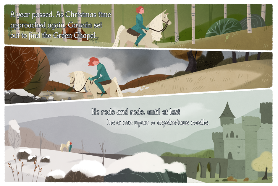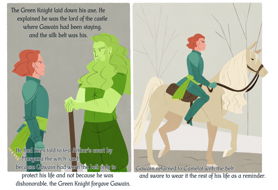 this is a final project for one of my classes, thought i'd share it with you fine folks. It's an incredibly short version of the green knight, told picture book style.