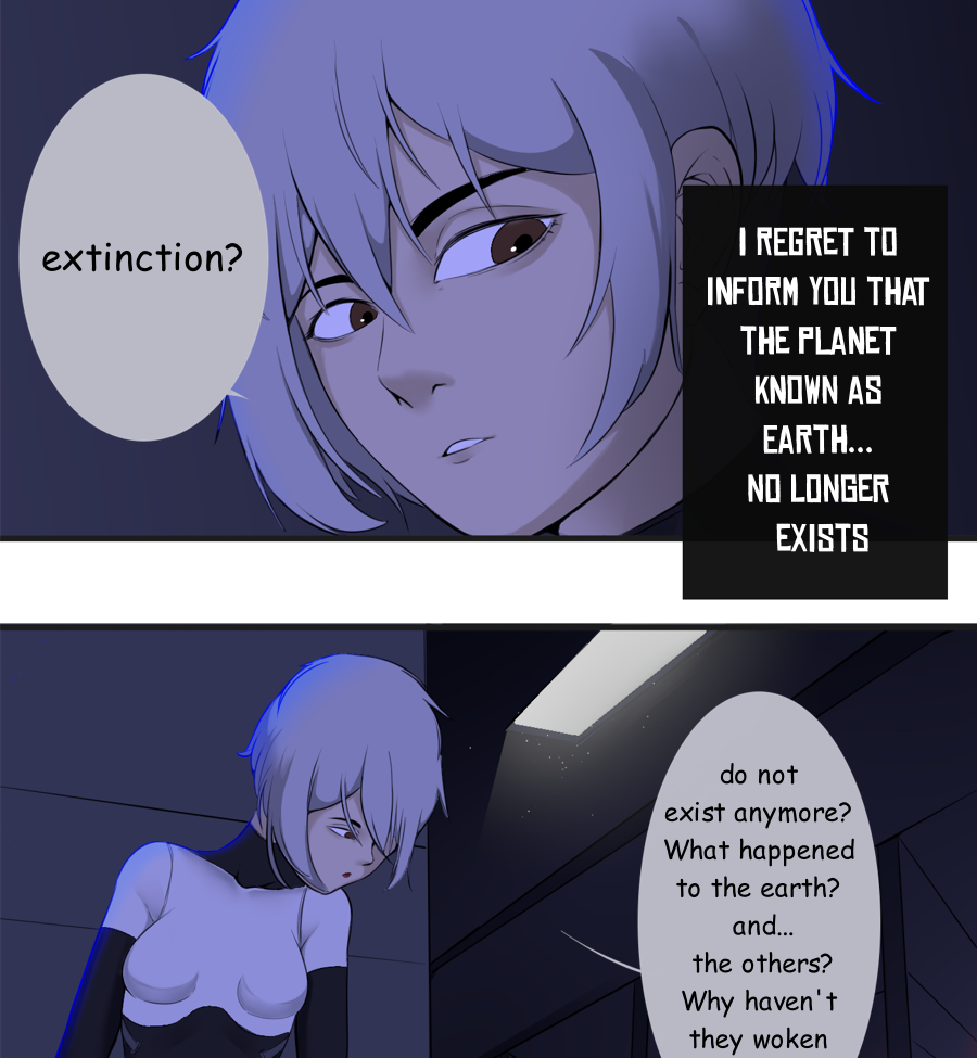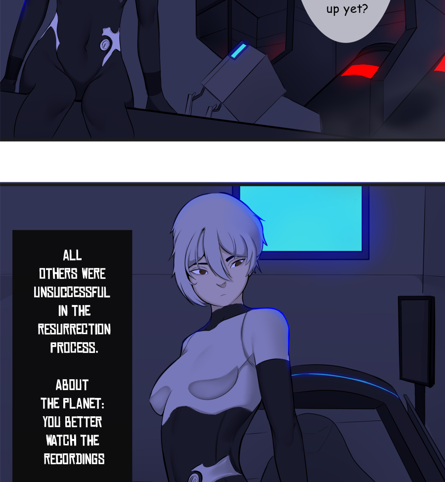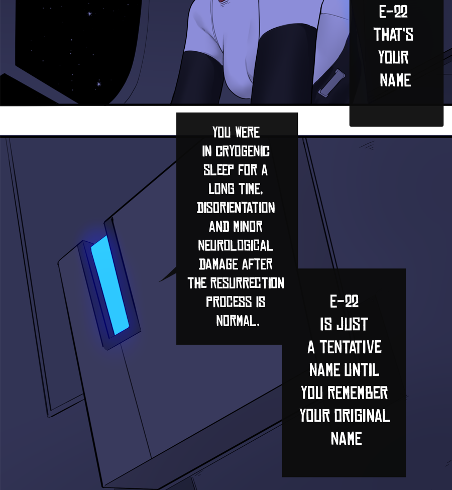 "E-22" is a young woman who has just awakened from a 24,000-year-old chemical sleep inside a small spaceship. After receiving a greeting from an AI, she discovers that she was one of the 12 people chosen from her unit to keep human life off the land, as it does not