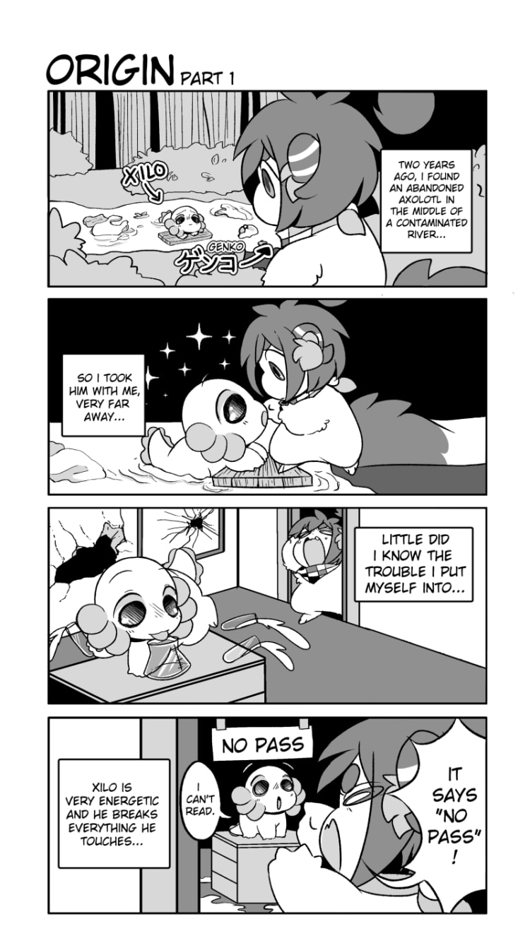 After Genko rescues an abandoned axolotl (Xilo) from a contaminated river, a series of situations happen around these two. After finding out how problematic Xilo is, Genko won't stop looking for a antidote to recover the health of the river to take Xilo back home, treating him like an assistant-pet in the process.