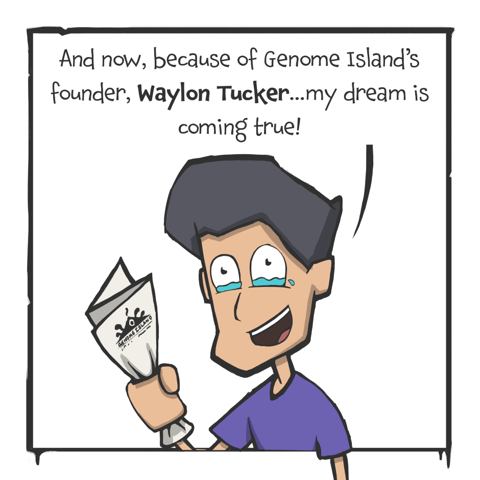 Arthur and Rick (Our main characters) meet on their airplane ride in to Genome Island They might have very different reasons for visiting Genome Island but they share a passion for creatures.
