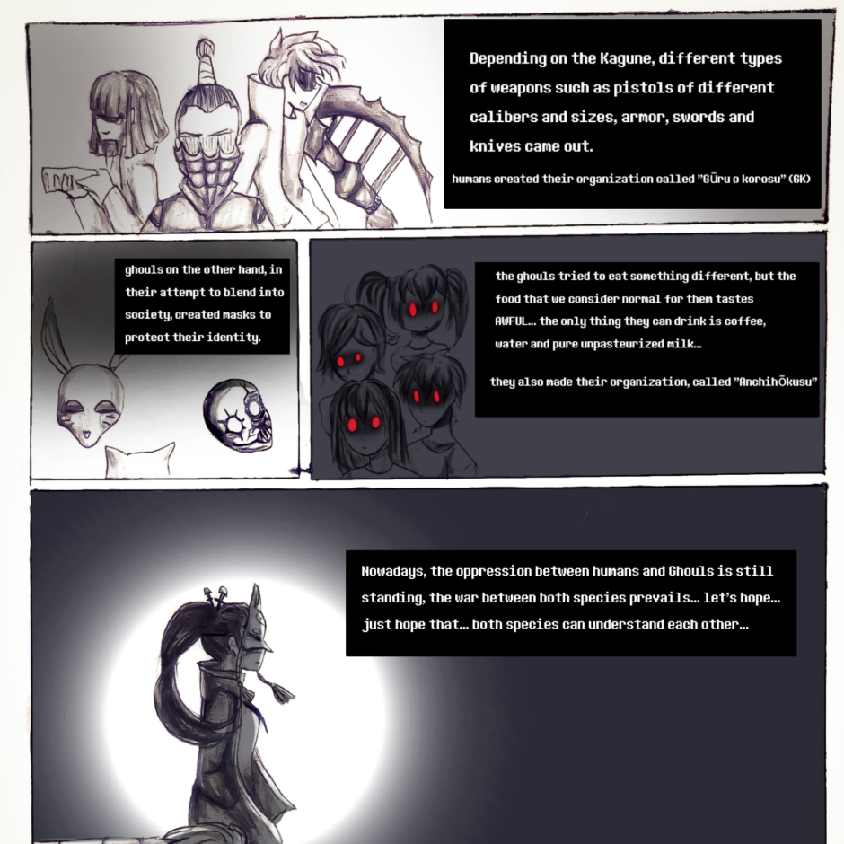 the story narrates the war between two different races, humans and Ghouls... there are going to be mishaps in the event... can a human and a Ghoul fall in love?