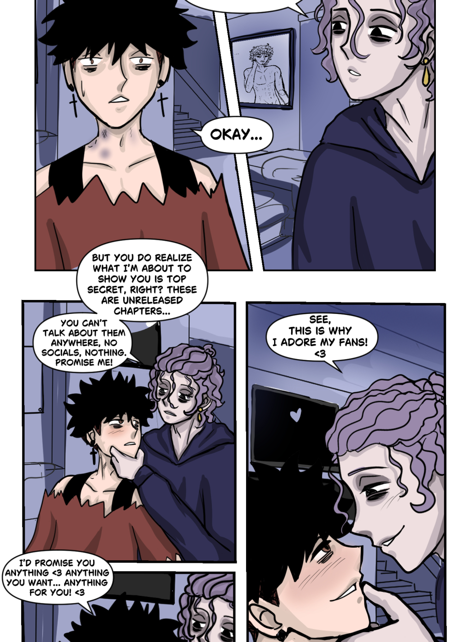 A story about a famous yaoi manga artist named Jácint, who draws inspiration for his work from his fans. However, he is extremely antisocial—so much so that he only goes shopping at night to avoid people. One night, during one of these late-night trips to the store, he meets a boy named Balu. Balu pretends to be a fan (even though he has no idea who Jácint is), because the situation is very convenient for him....