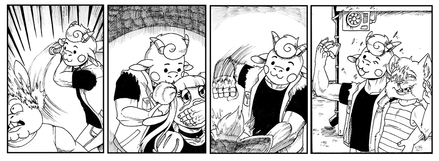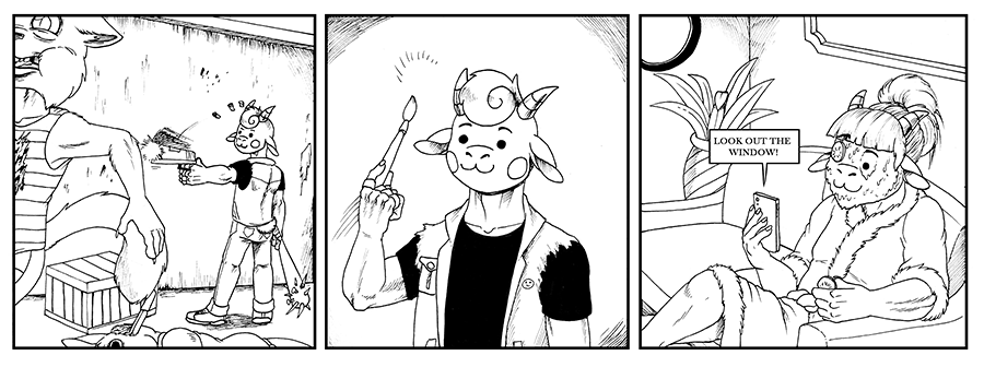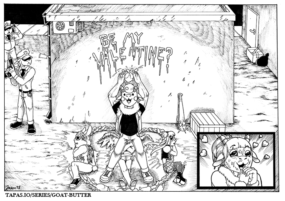 This is my new comic called Goat Butter, it's based on a very dark sense of humor. The two main characters are named Eddie and Rose, they can be very violent and they do what they want, whenever they want.