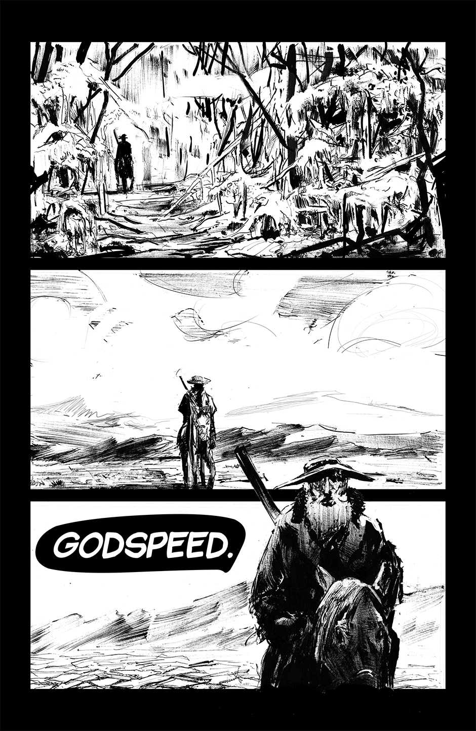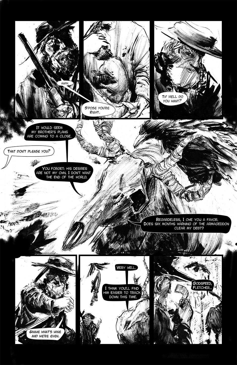 UPDATES EVERY TUESDAY! ***A story the 3 devils*** Godspeed is an old issue #1 that me and Tyler finished bout a year ago. We've done bout 40 pages of other stuff since then. Kinda embarrassed about the art. But hey, might as well up load it. It'll run until June 6th.
