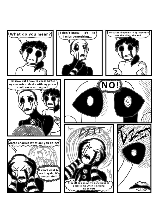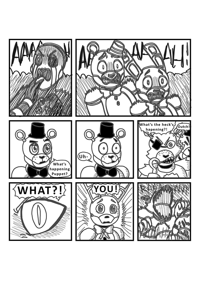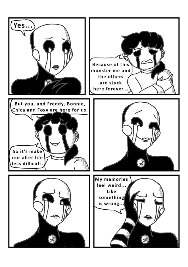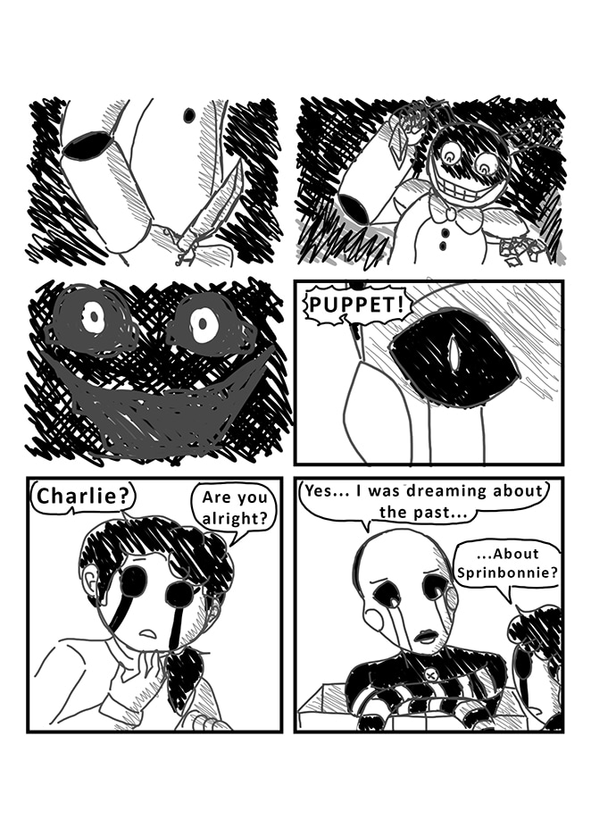Puppet, unsure of what really happened in the past, decides to take a better look at his memories with his powers. But by accident, he will bring Fredbear and Springbonnie into the present. Very dark secrets and realities will then be revealed... As well as dangerous ennemies.