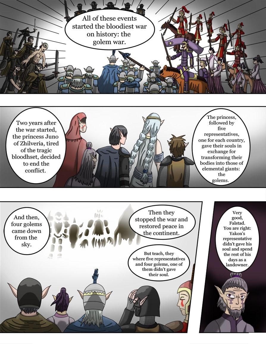 Golem wars is set in the continent of Iovis, where five countries coexist. Sixty years ago the continent was thorn apart by a war, the golem war.