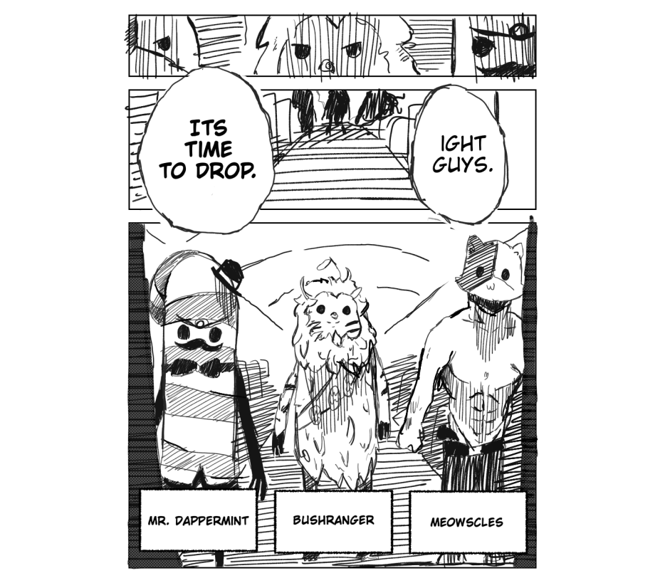 The squad prepares to drop into an intense battle, we meet our heroes Bushranger, Meowcles, and Mr. Dappermint