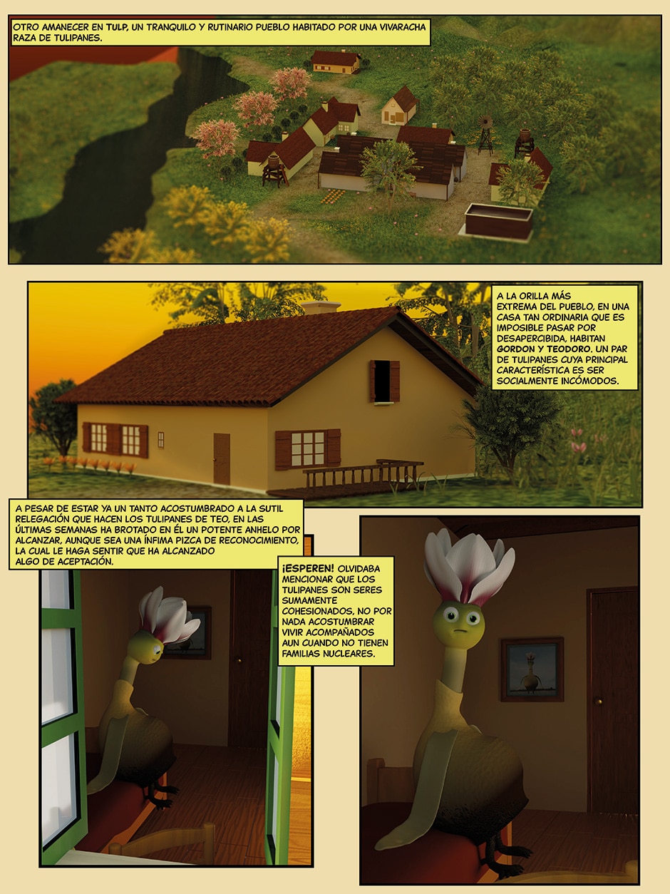 Teodoro y Gordon son dos tulipanes con un fuerte lazo de amistad que por motivos diferentes tienen como objetivo máximo obtener el mítico y escurridizo tulipán dorado. Usando diferentes métodos, debido a sus personales dispares, buscarán de manera disonante alcanzar su fin, pero su manera contradictoria de afrontar las situaciones que se les presentan disminuye dramáticamente el potencial de sus acciones.