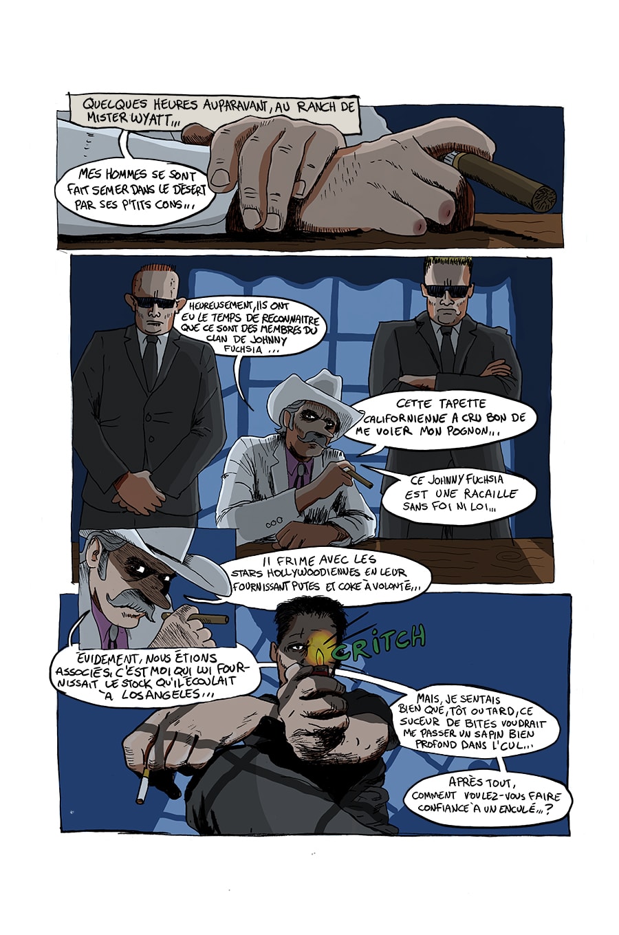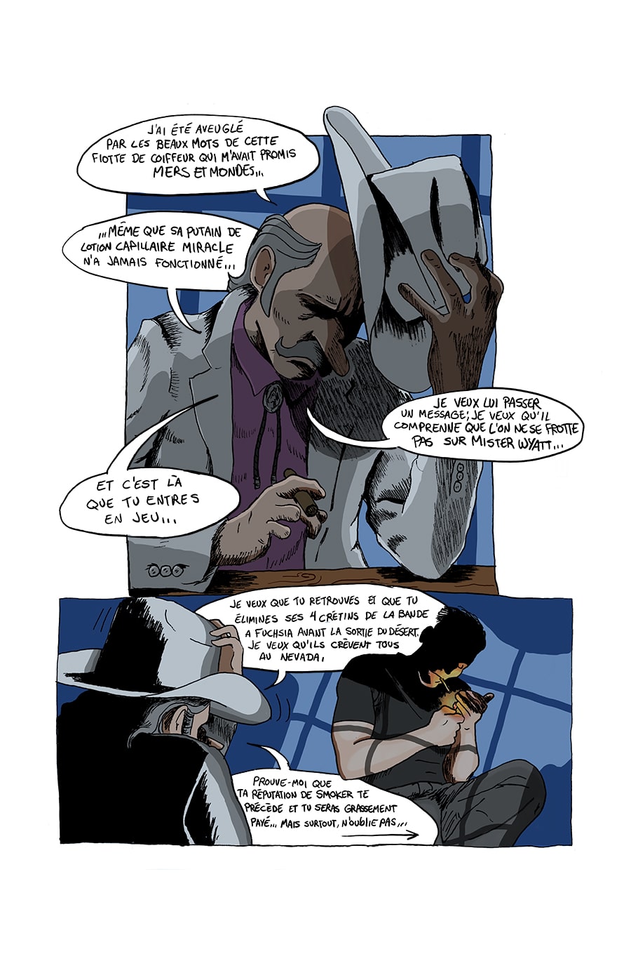 Mr. Wyatt est en furie! On vient de lui voler une forte somme d'argent dans son ranch du Nevada... Pour comble de malheur, ses hommes de mains se font semer par les 4 cambrioleurs dans le désert.