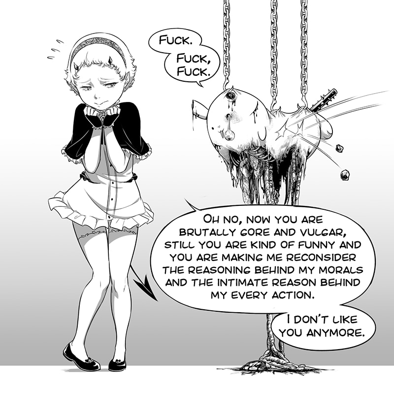 Neronte is the first son of Satan. He is now on earth but not to enslave nor to destroy... No one can actually even grasp the intentions of a higher mind like his. Oh... and her sister is with him too... But that's not important, we don't give a fuck about her.