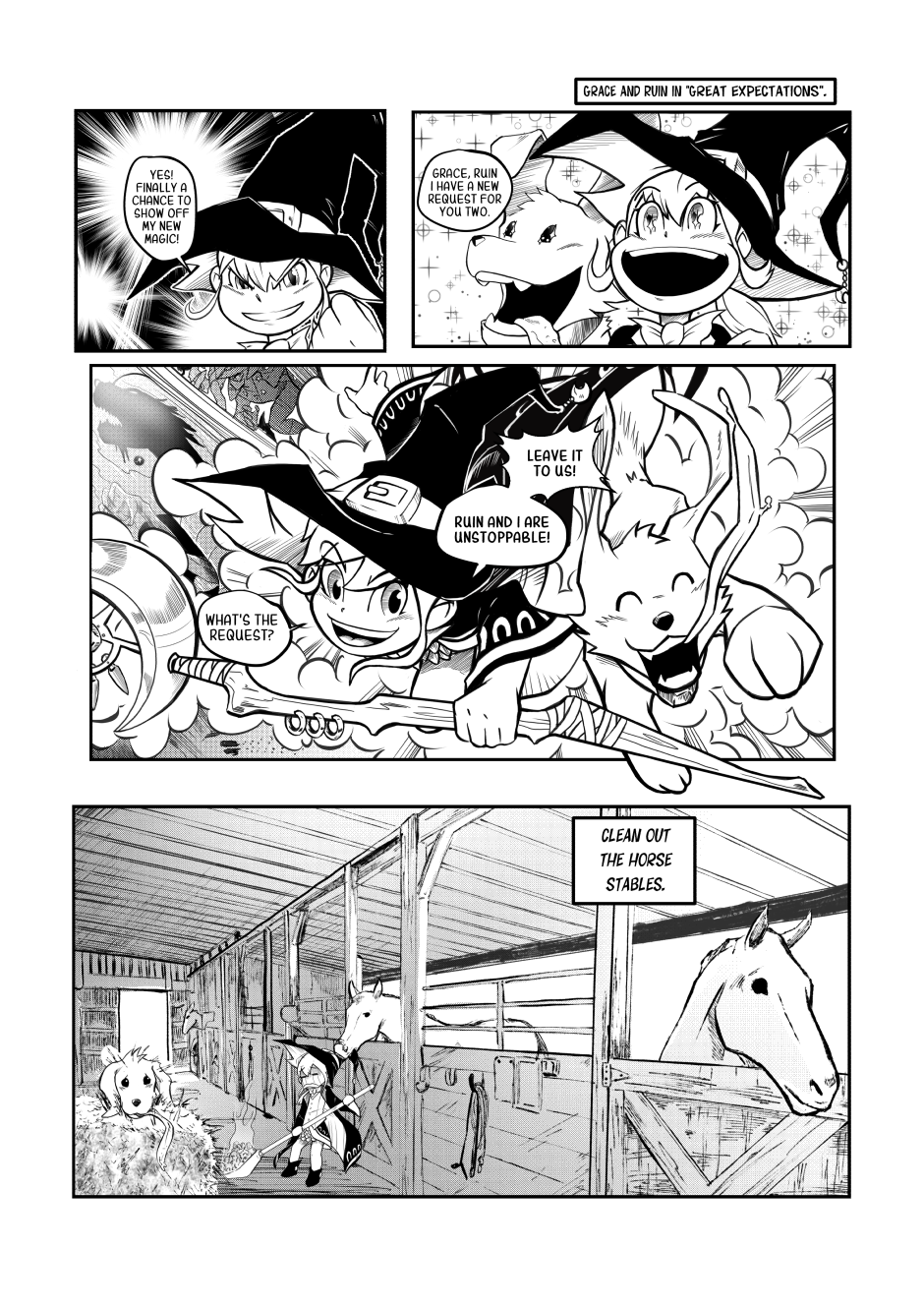 Grace is a young and talented witch who's too eager for her own good. She'll do anything for an adventure and together with Ruin, her dog familiar, it won't take long for things to go south! This is a 4-koma manga that'll leave you with a huge smile on your face!