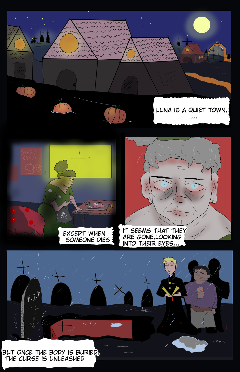 The illustrations give off an eerie feeling, which fits the story very well. Also I like how the narration had sort of a poetic tone to it. Good work!
